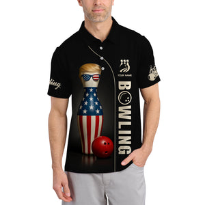 Personalized American Bowling Shirt, Make Bowling Great Again Trump Shirt With Custom Name, Bowling Jersey For Men