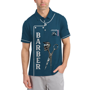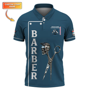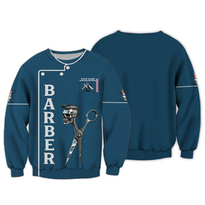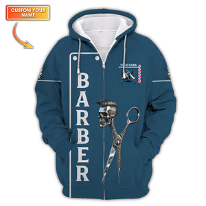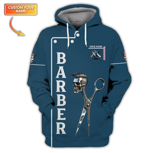 Personalized Barber Uniform , Barber Custom Name 3D Shirt With Scissors And Skull, Gift For Stylist Lover