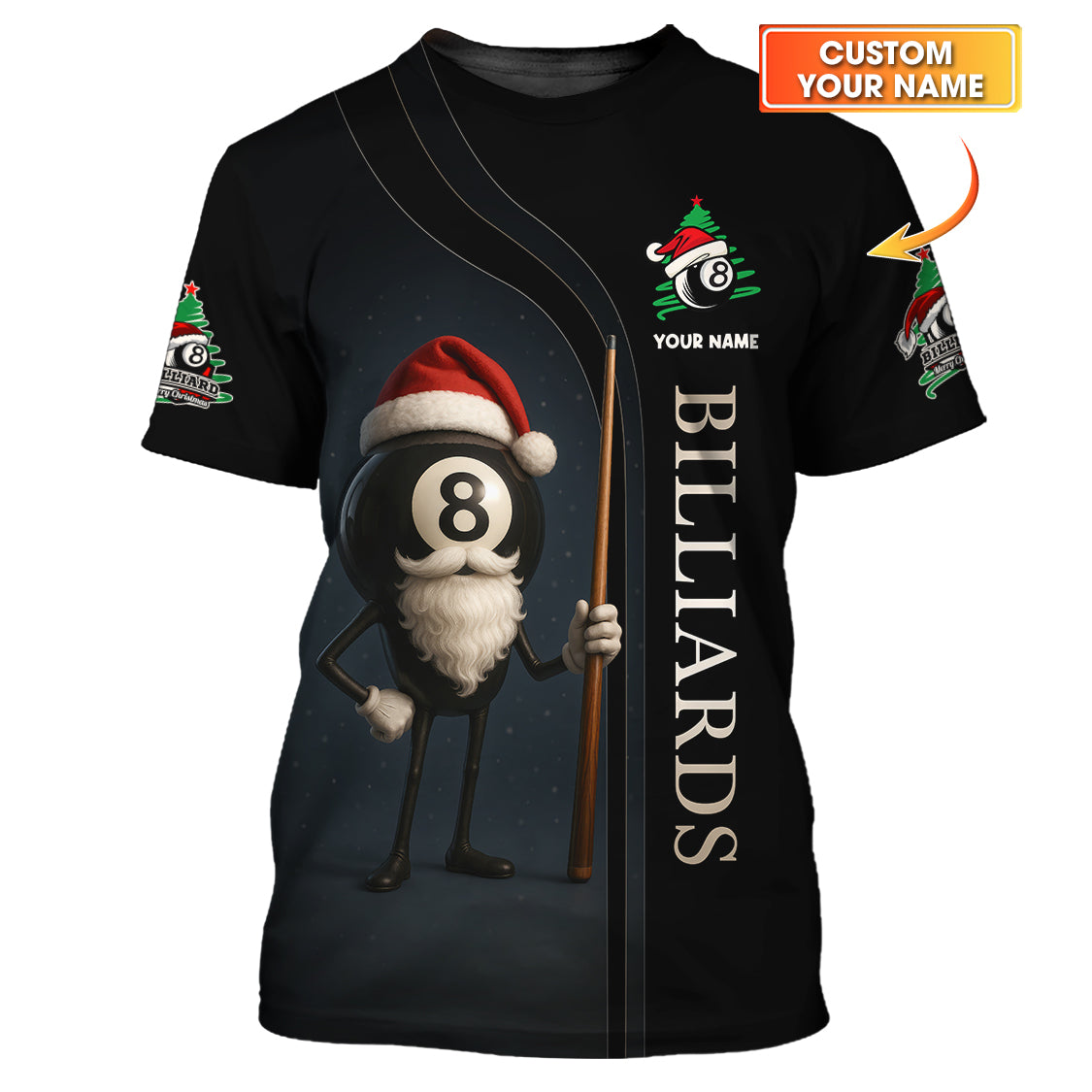 Personalized Billiard Shirt, Billiards Christmas For Pool Players, 8 Ball Shirt For Men With Custom Name