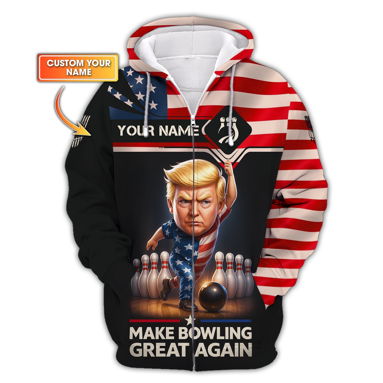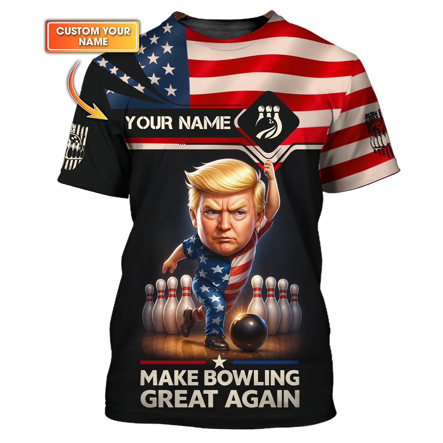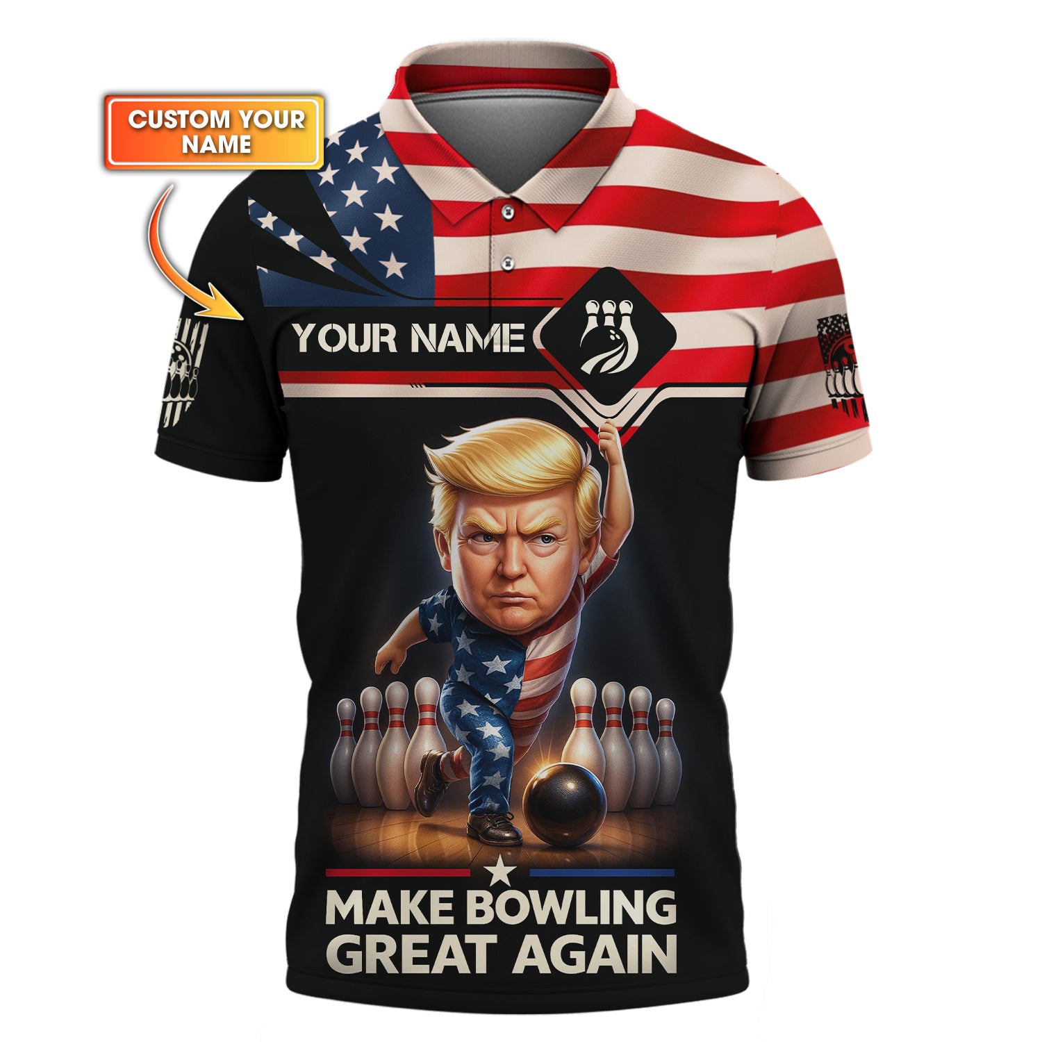 Personalized Bowling Jersey, Make Bowling Great Again Trump Shirt With Custom Name, American Bowling Shirt For Men