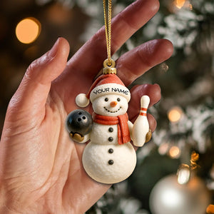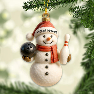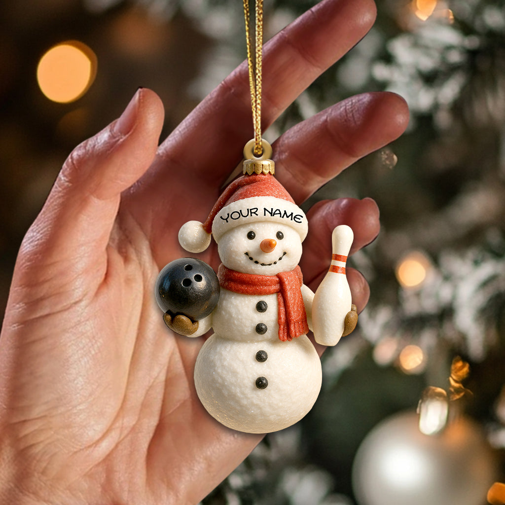 Personalized Bowling Snowman Ornament β Custom Name Christmas Ornament, Funny Bowling Gift for Men, Snowman and Bowling Ball Xmas Tree Decoration
