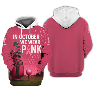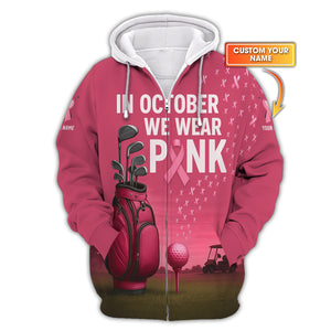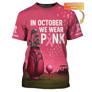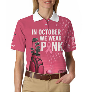 Personalized Breast Cancer Golf Shirt, In October We Wear Pink Shirt With Custom Name, Pink Golf Shirt For Golfer