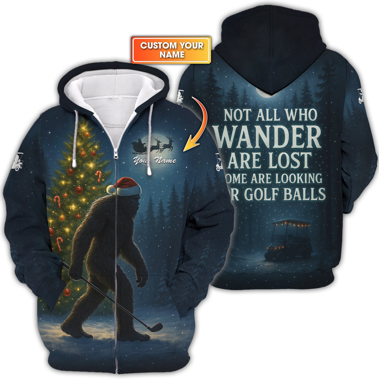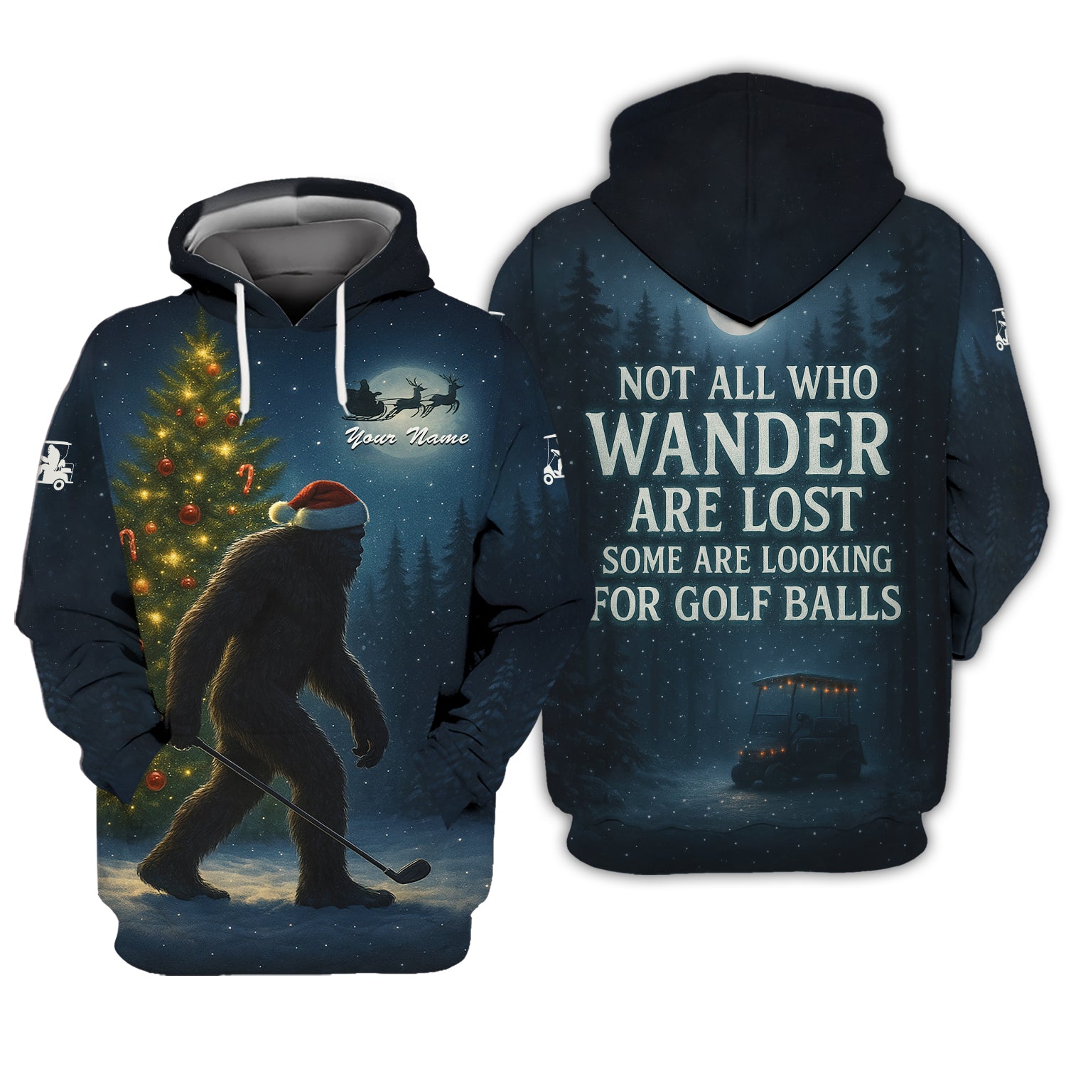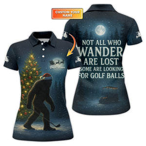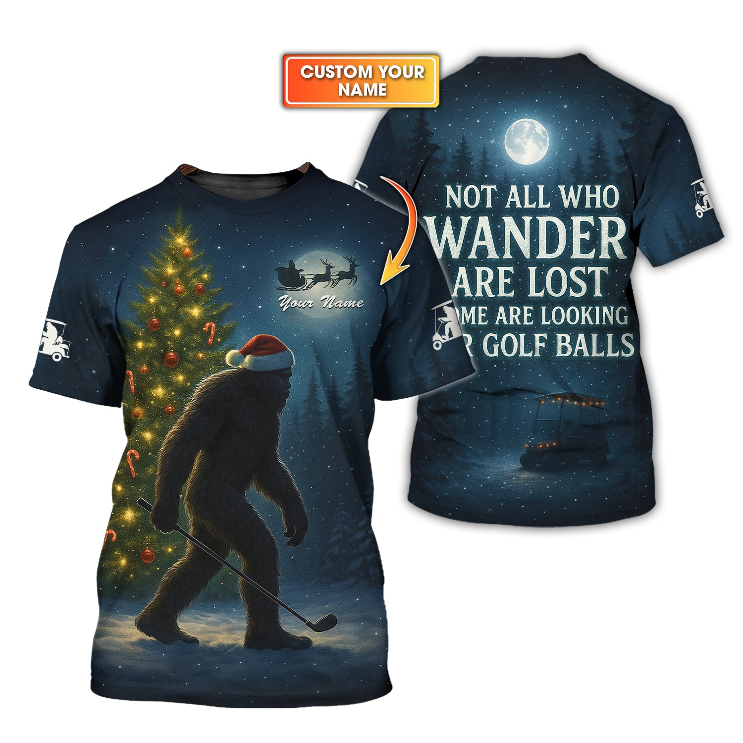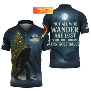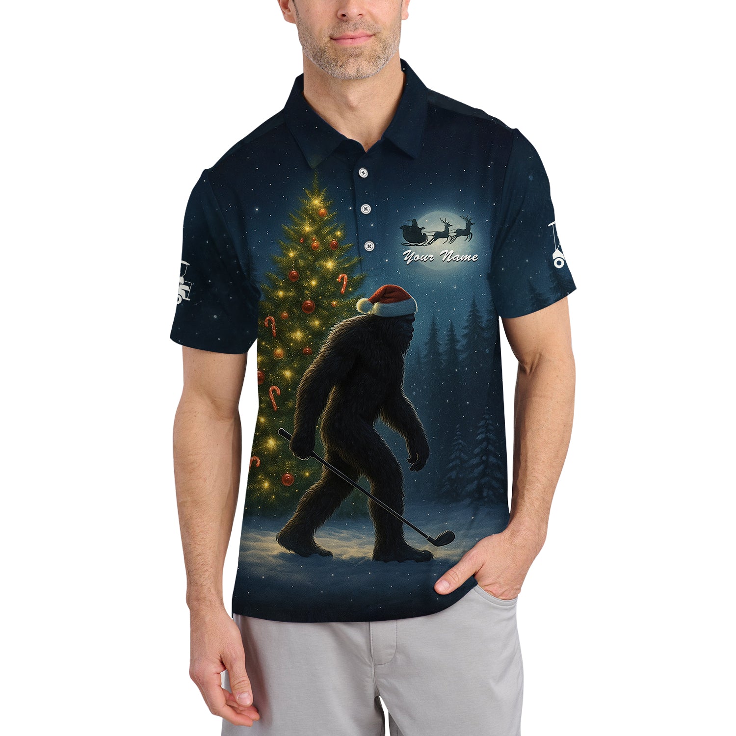 Personalized Christmas Golf Shirt, Bigfoot Christmas Shirt For Golfer, Crazy Golf Shirt For Men