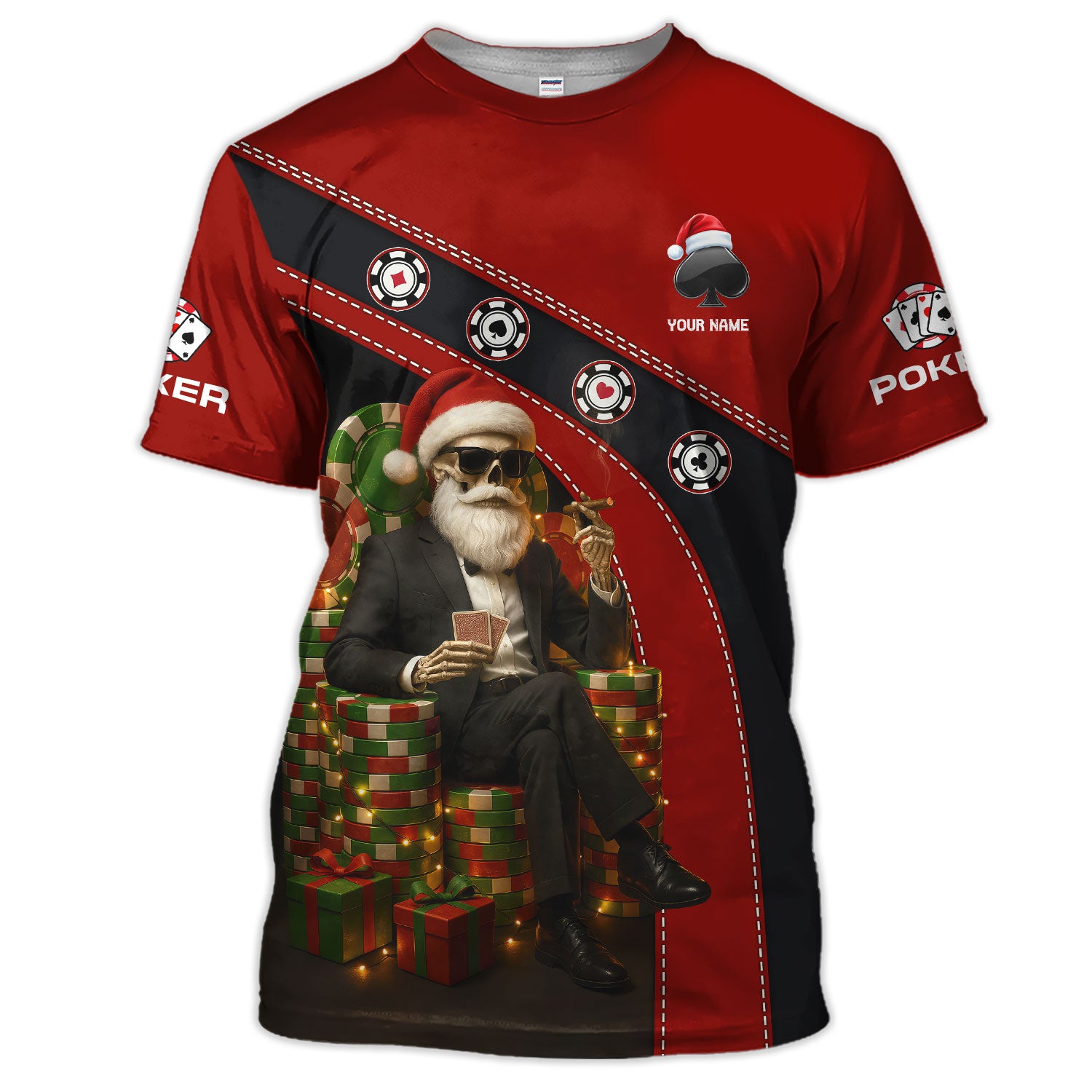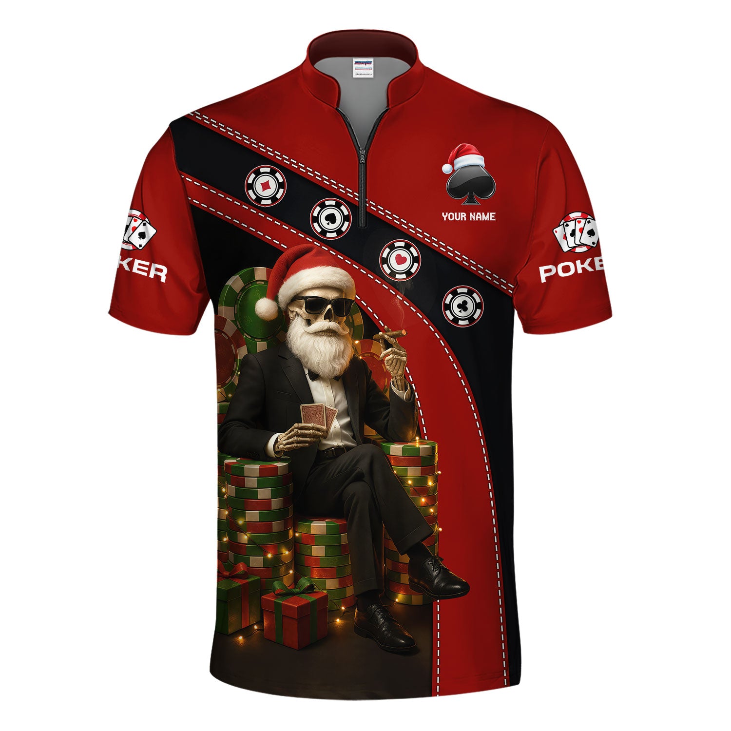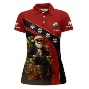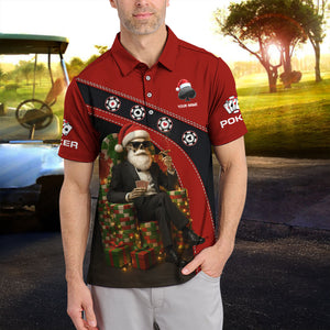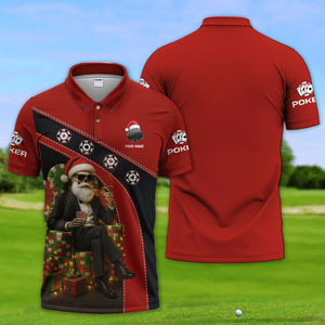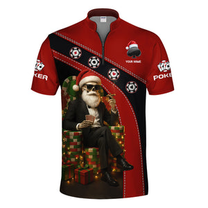 Personalized Christmas Poker Skull Santa Polos, Funny Poker Shirt For Men With Custom Name, Xmas Poker Shirt For Gamble