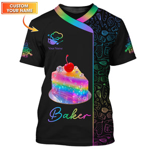 Personalized Colorful Baker Uniform, Custom Name Bakers Shirt for Baking Lovers