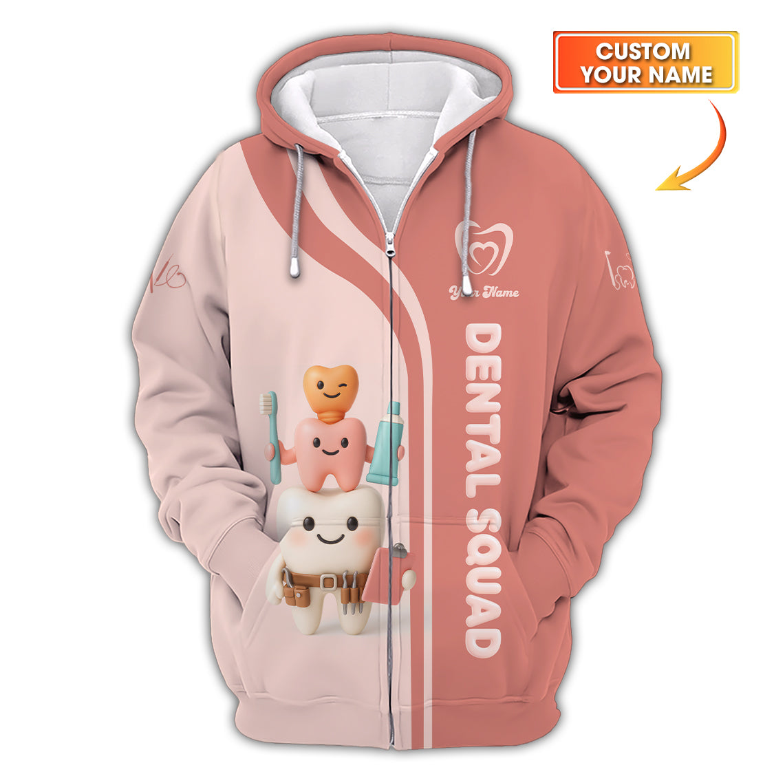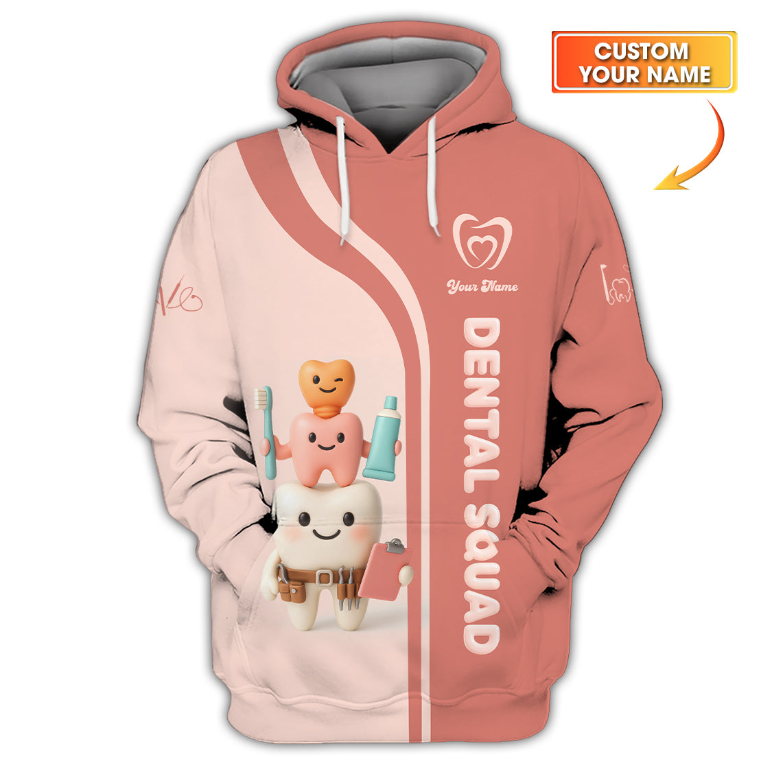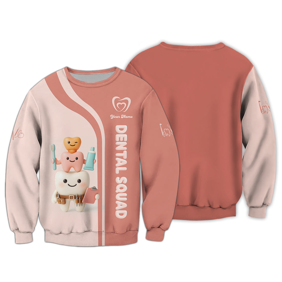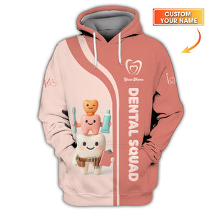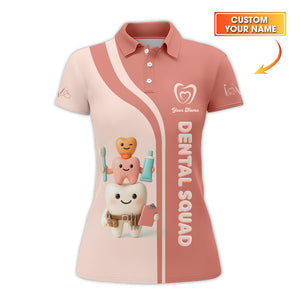 Personalized Dental Shirt For Women, Custom Name Dental Squad Scrub Shirts With Cute Tooth, Gift For Dentists