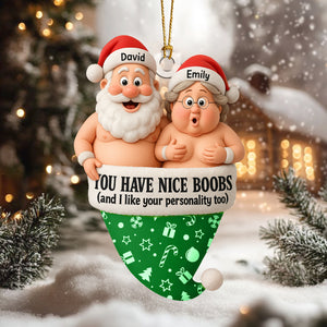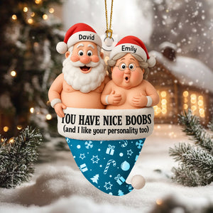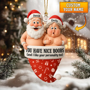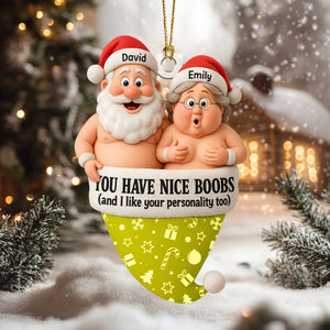 Personalized Funny Couple Christmas Ornament, Custom Name Santa And Wife Ornament, You Have Nice Boobs Humor Gift For Couple
