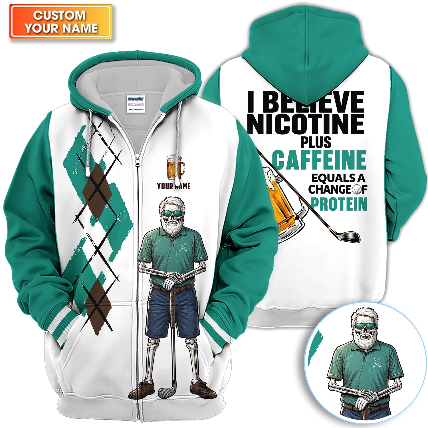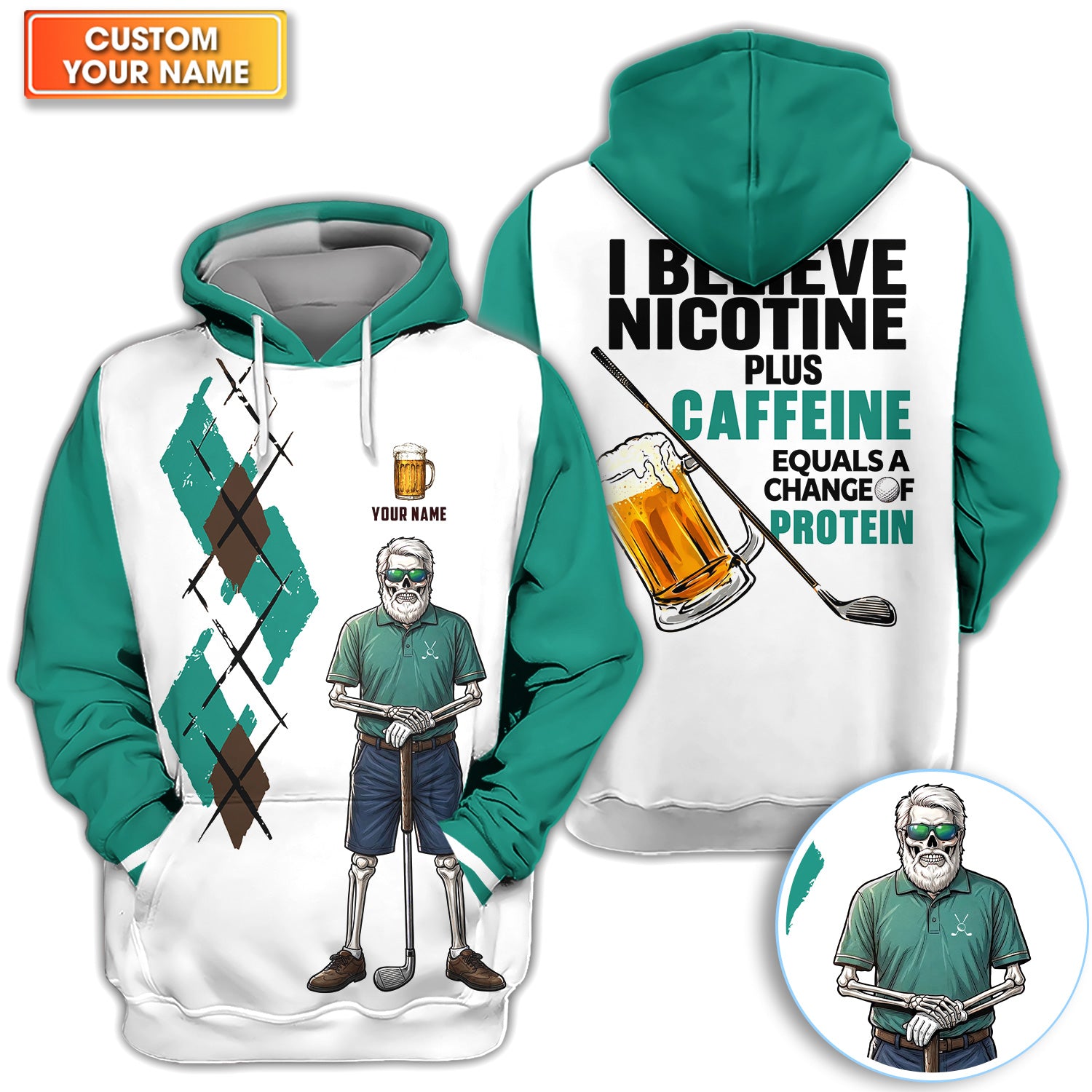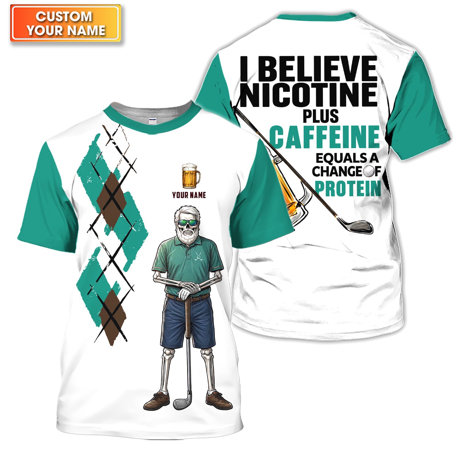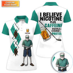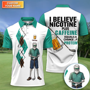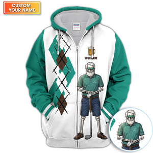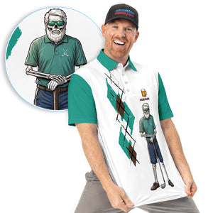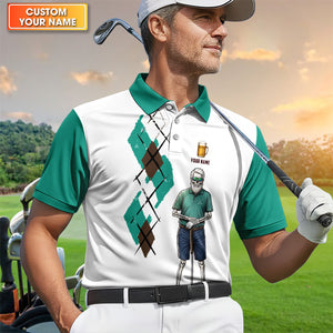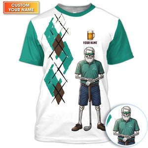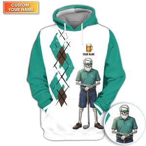 Personalized Funny Skull Golfer Pattern Golf Shirt, Skeleton Beer Golf Shirt For Men, Golf Lover Gift