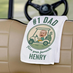 Personalized Golf Towel for Dad with Kid’s Photo, Custom Father's Day, Golf Gift for Dad, Gift for Golfers