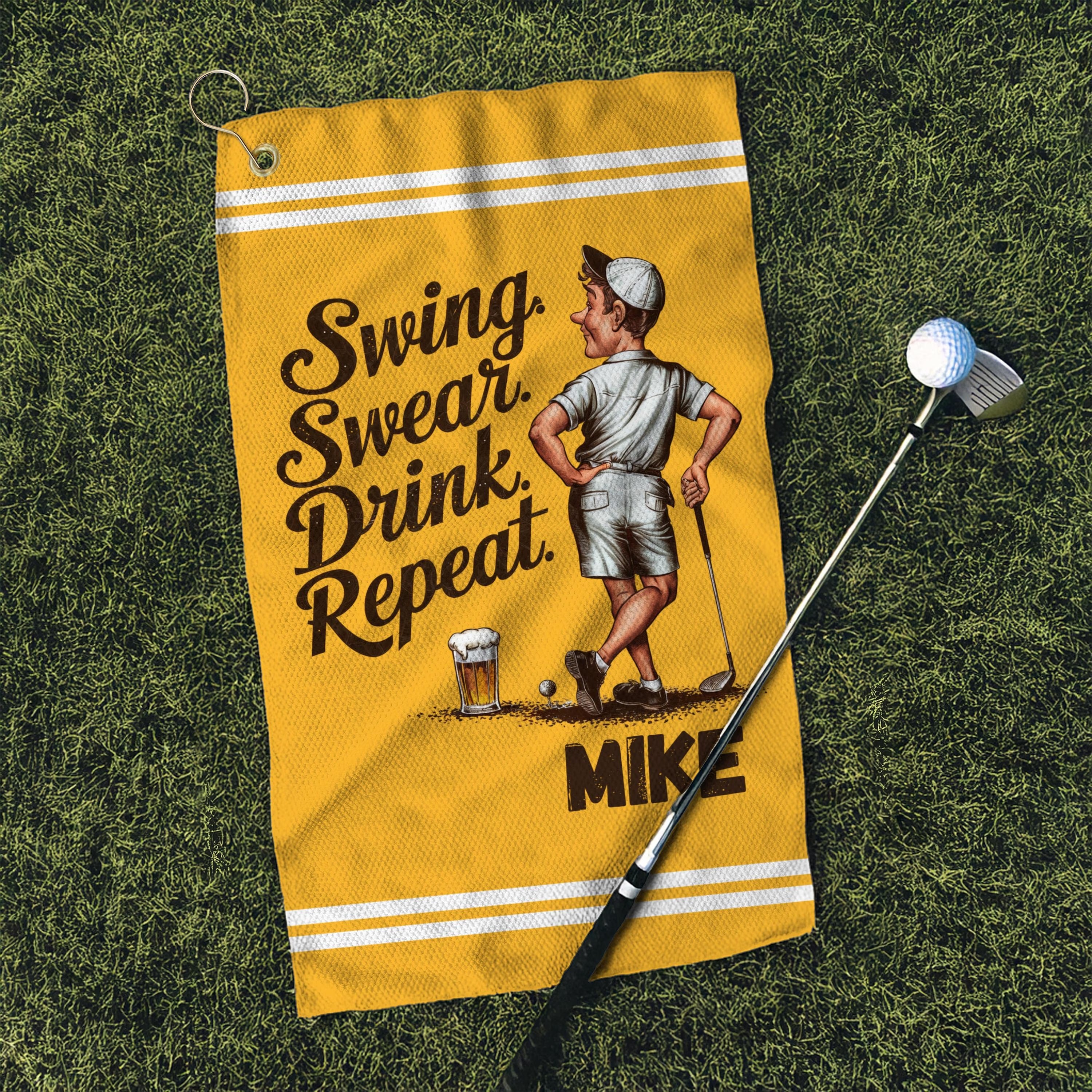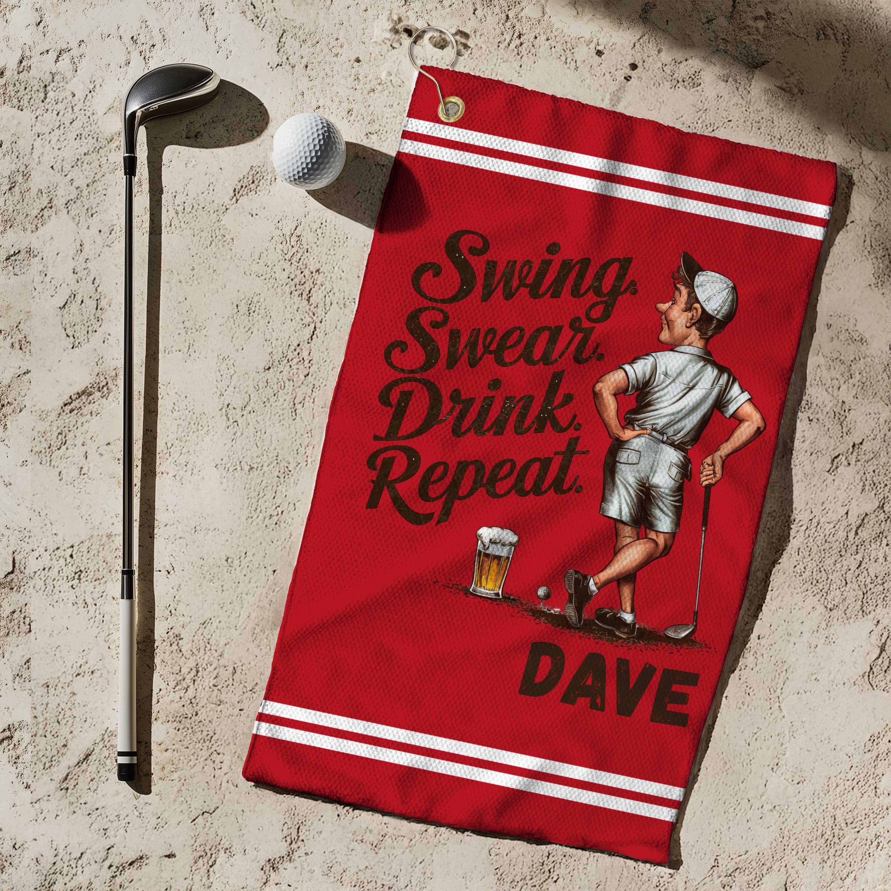 Personalized Name Golf Towel, Funny Golf Towels For Men, Beer And Golf Towel