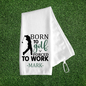 Personalized Name Golf Towels - Born to Golf Forced to Work, Funny Golf Towel, Gift for Golfer, Golf Towels Gift For Men
