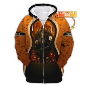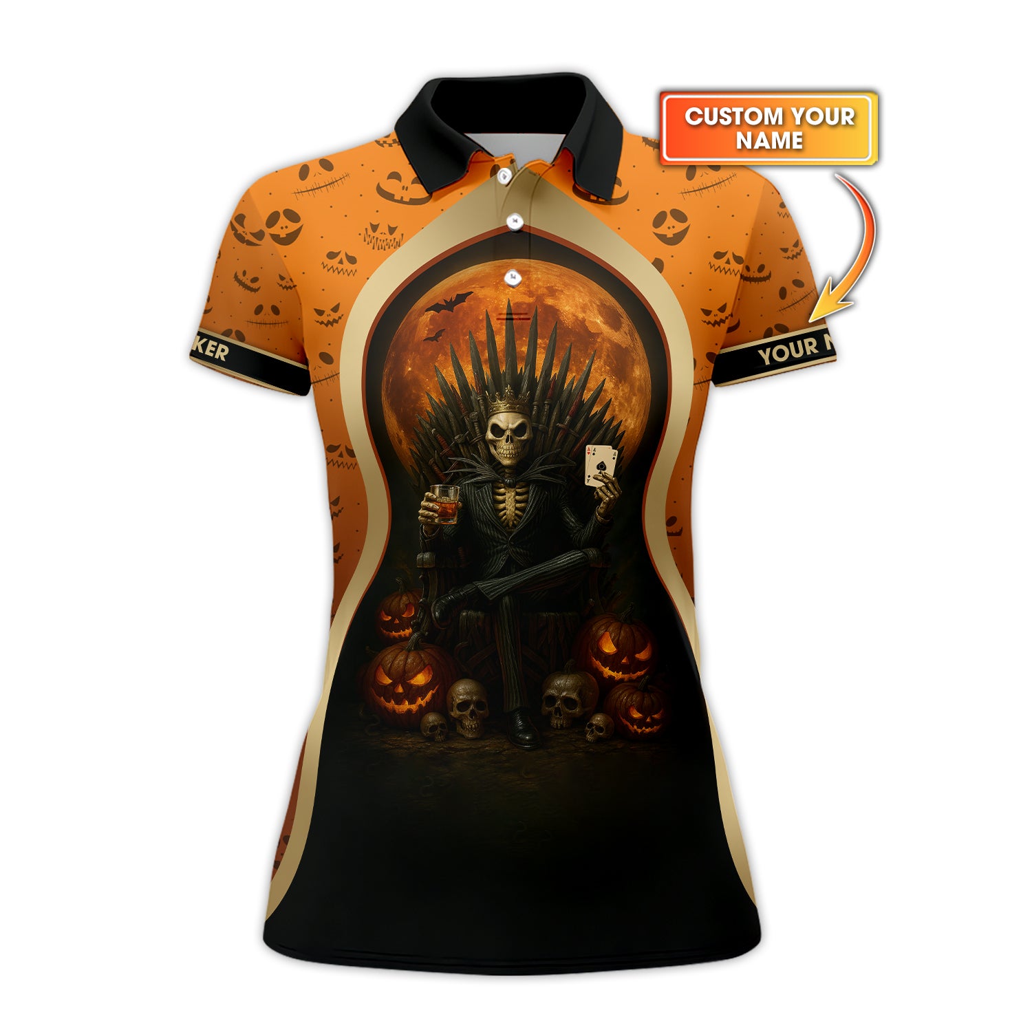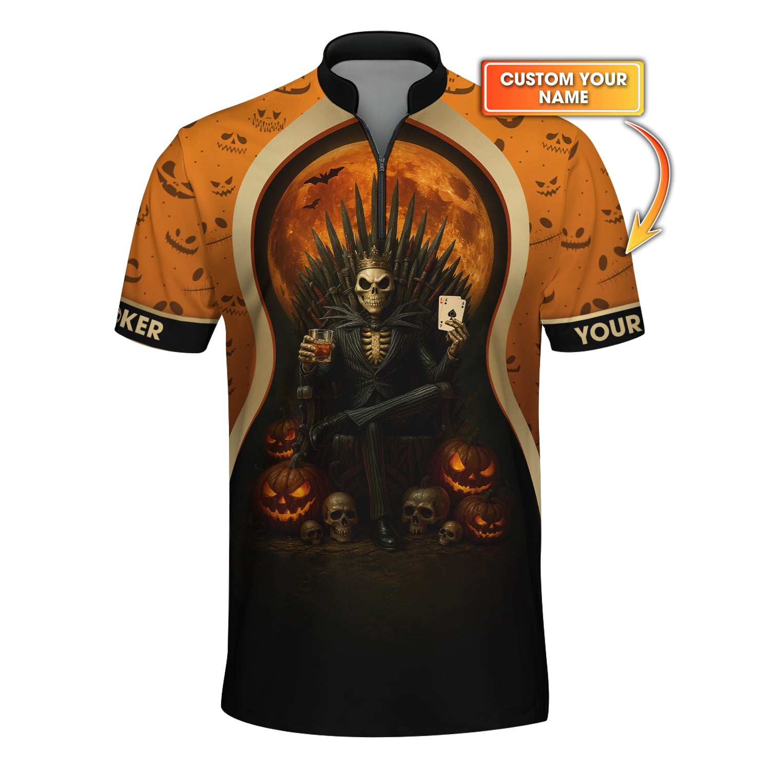 Personalized Name Skeleton Poker Polos, Poker Halloween Shirt, Funny Poker T-Shirt For Men's
