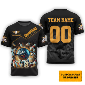 Personalized Name & Team Strike Bowling 3D Polo Shirt, Bowling T-Shirt, Gift For Bowler