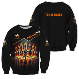 Turn heads on the lanes with this personalized bowling T-shirt featuring a dynamic flaming pins design! Perfect for tournaments, leagues, or casual games, this lightweight and breathable sportswear offers unmatched comfort and style. 🎳🔥 Add your name or team logo for a professional and standout look. A great gift for bowlers to elevate their game and style!