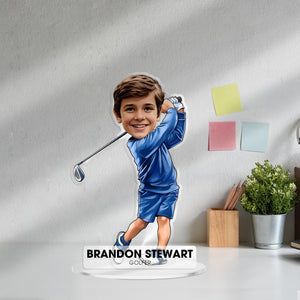 Personalized Photo & Name Golf Gift For Golfers, Custom Golf Figurine Trinket Caricature Portrait Desk Name Plate