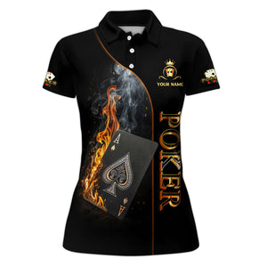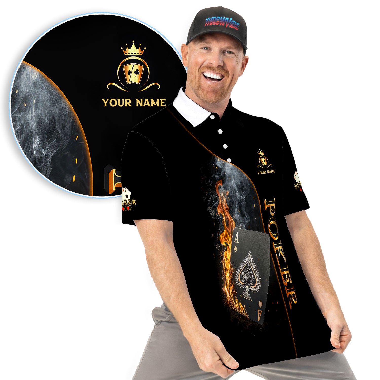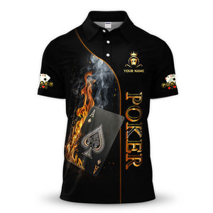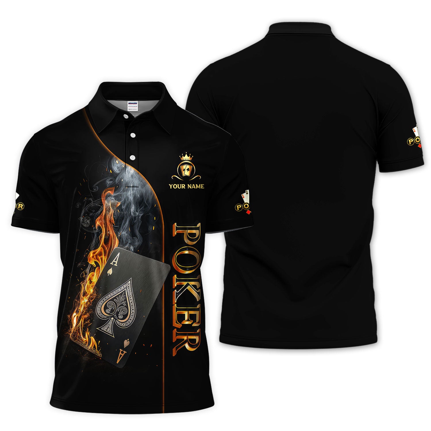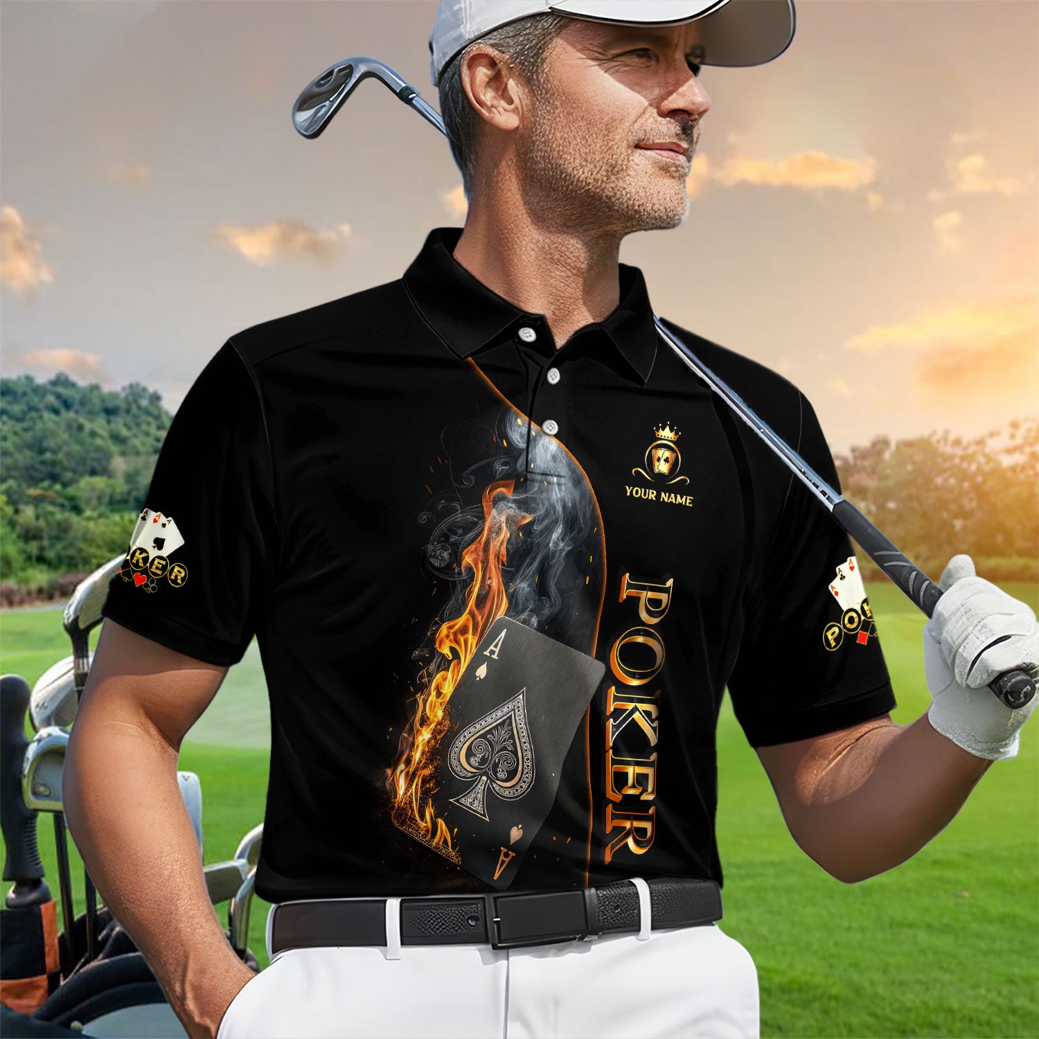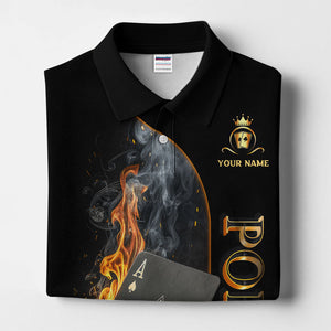 Personalized Poker Fire Ace Pattern Polo Shirt, Custom Name Shirt For Men, Golf Gift For Poker Lover
