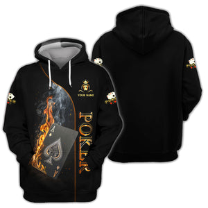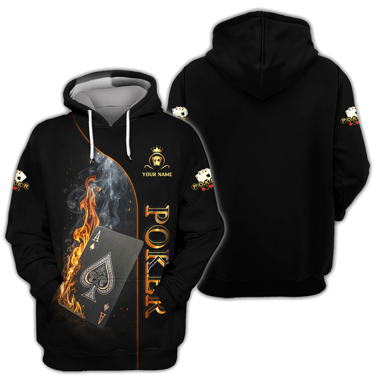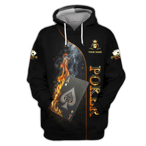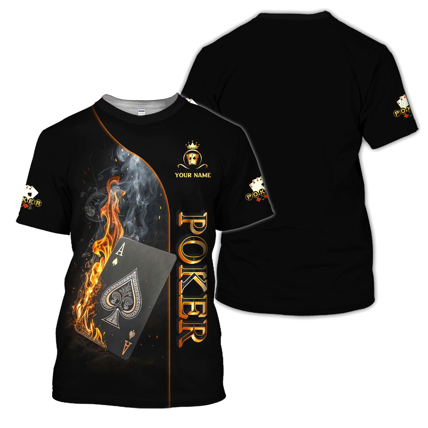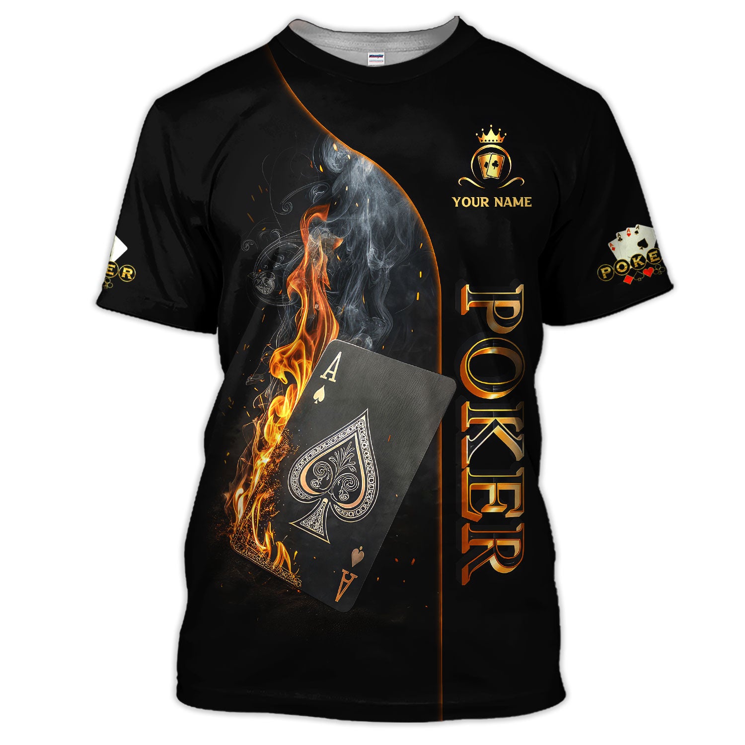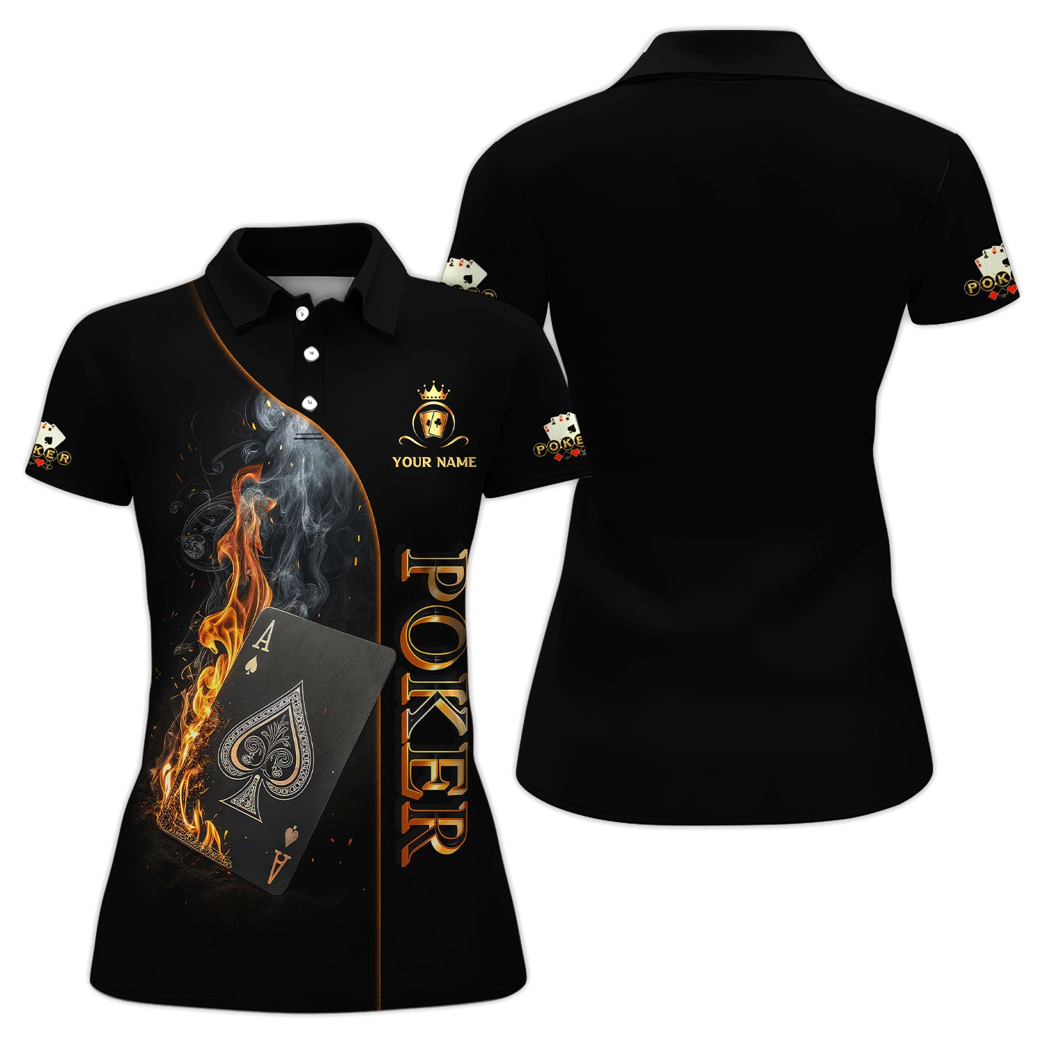 Personalized Poker Fire Ace Pattern Polo Shirt, Custom Name Shirt For Men, Golf Gift For Poker Lover