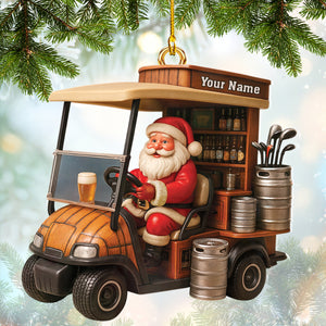 Personalized Santa Golf Cart Ornament, Funny Beer And Golf Ornament, Custom Golf Christmas Ornaments For Golfer
