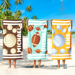 Personalized Sport Beach Towel, Custom Volleyball Beach Towel, Baseball Towels, Pool Towel Summer Gift