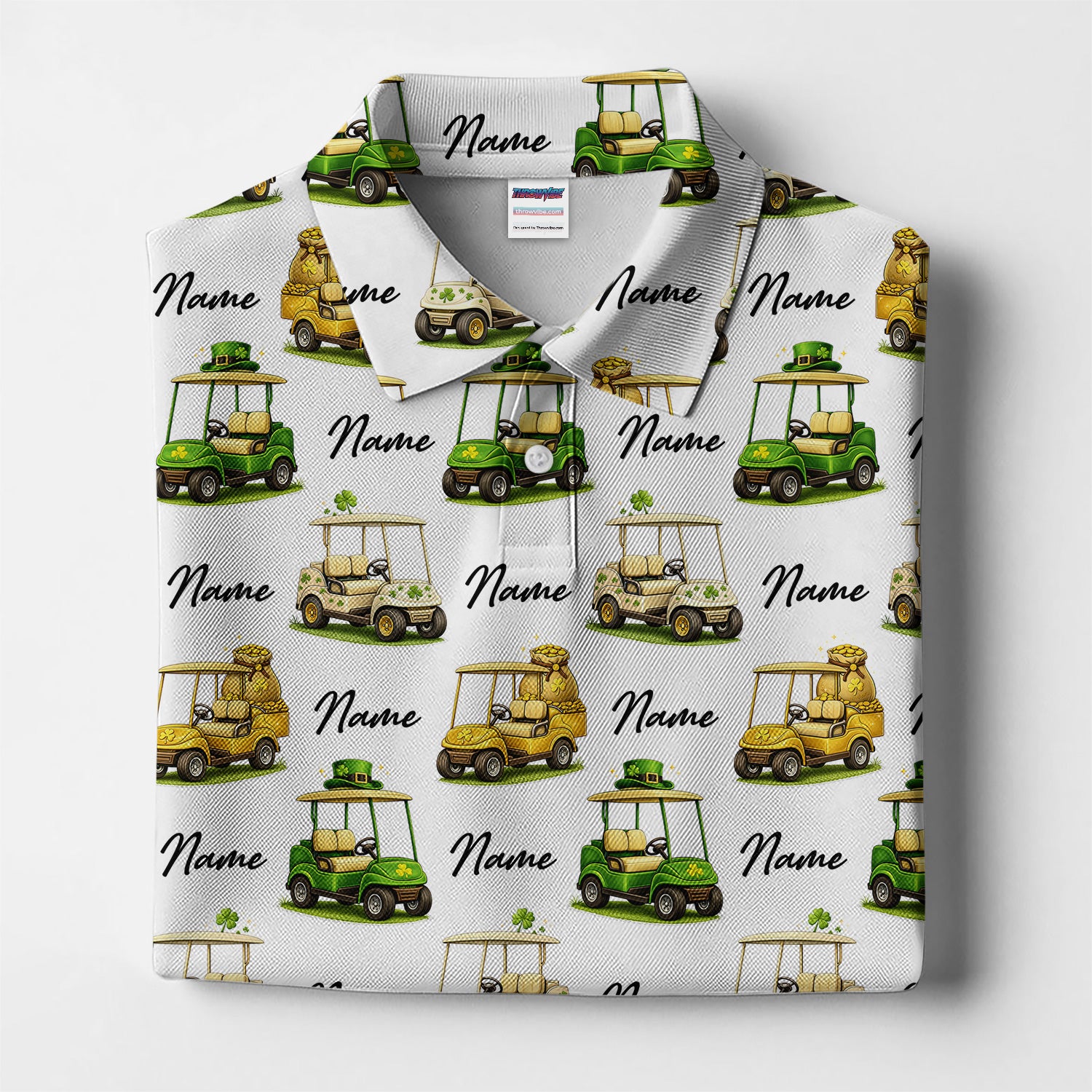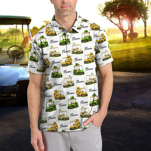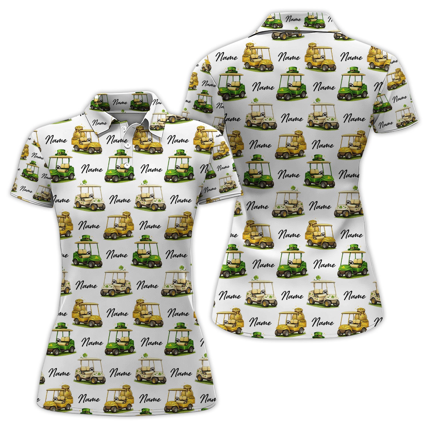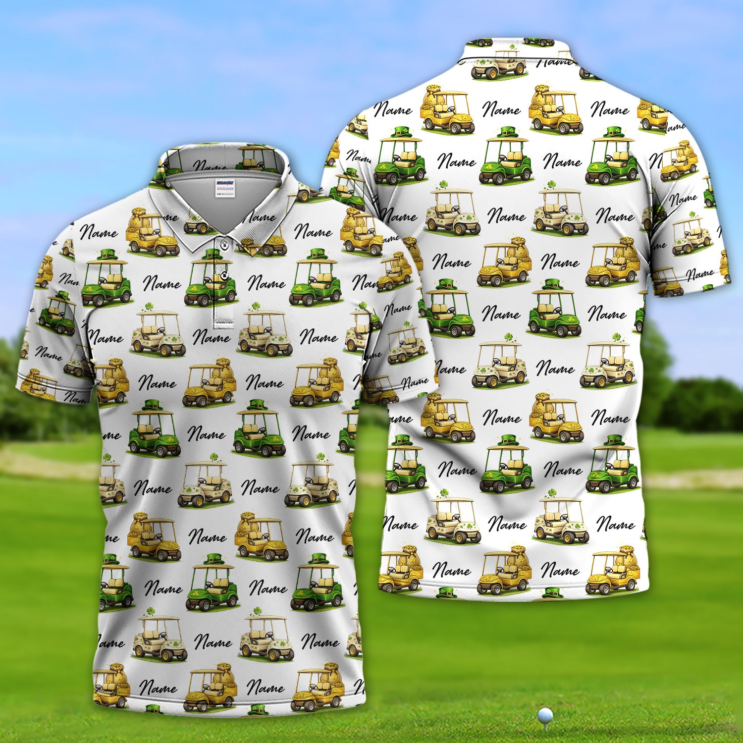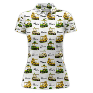 Personalized St Patrick’s Day Pattern Golf Shirt, Custom Name Golf Cart Shirt For Golfer, Funny Golf Gift For Men