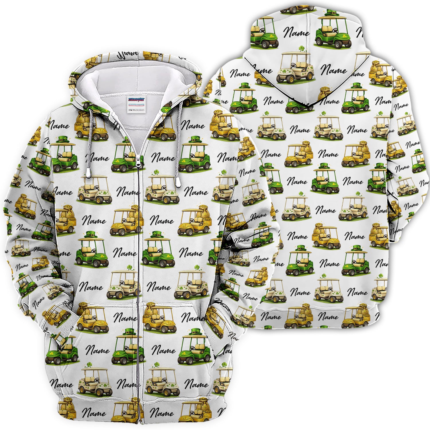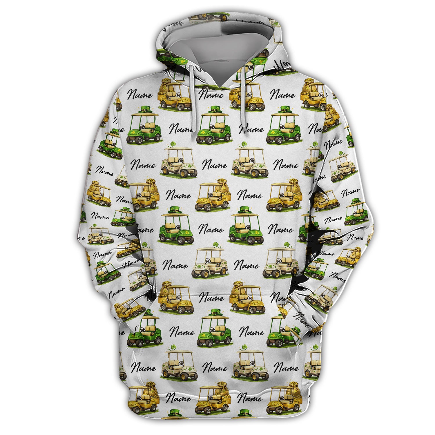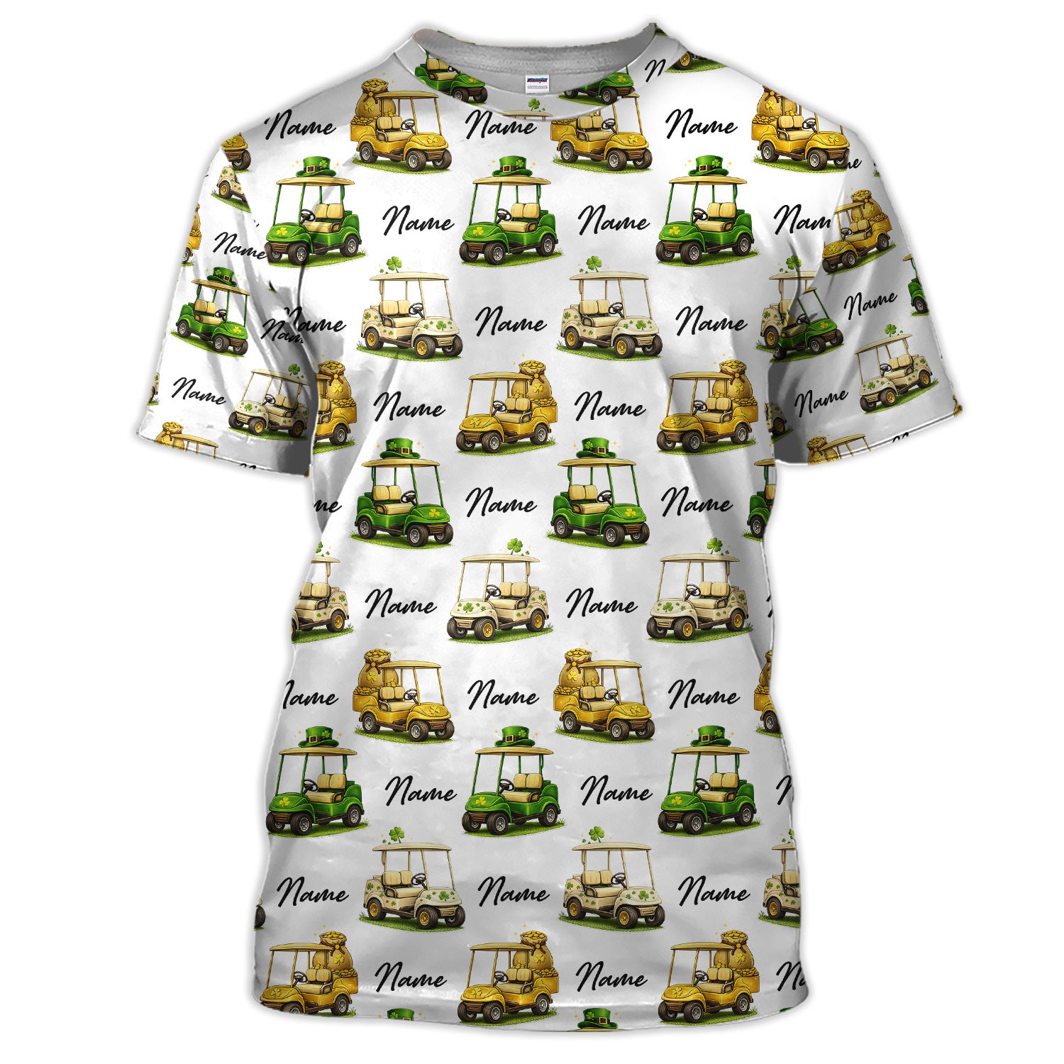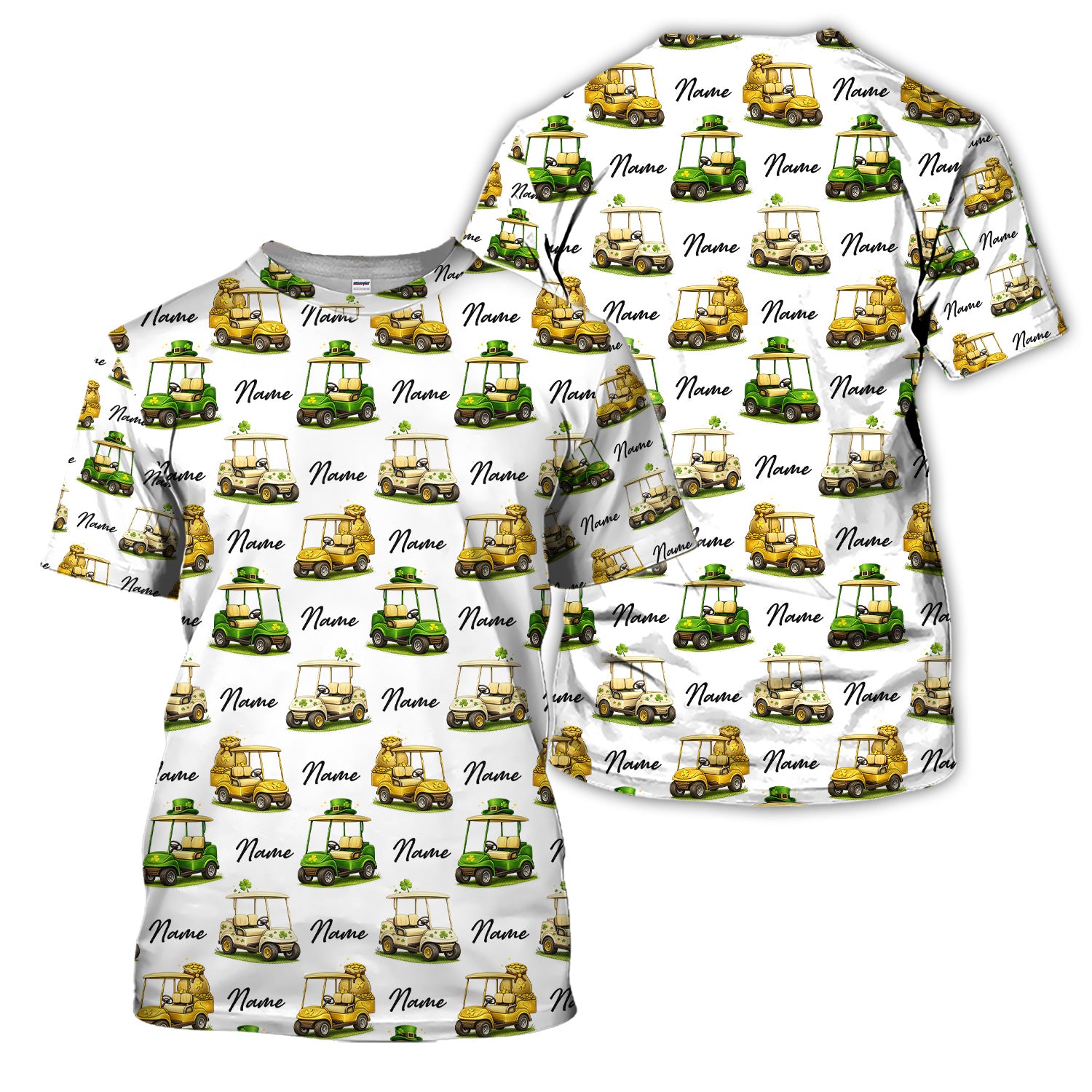 Personalized St Patrick’s Day Pattern Golf Shirt, Custom Name Golf Cart Shirt For Golfer, Funny Golf Gift For Men