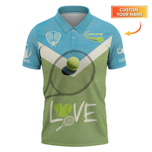 Personalized Tennis Shirt – LOVE Design with Ball & Racket – Custom Name Athletic Tee