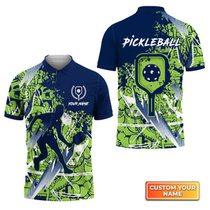 Pickleball, Scritch Man Green Blue Personalized Name 3D Polo Shirt Gift For Pickleball Player
