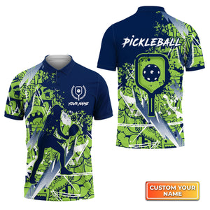 Pickleball, Scritch Woman Green Blue Pattern Personalized Name 3D Polo Shirt Gift For Pickleball Player