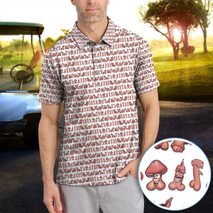 Playful Abstract Cartoon Pattern Golf Polos, Funny Golf Shirt For Men, Golf Gift For Golfer