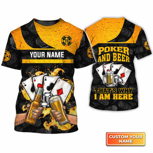 Poker And Beer That's Why I'm Here Personalized Name 3D Tshirt Gift For Poker Players
