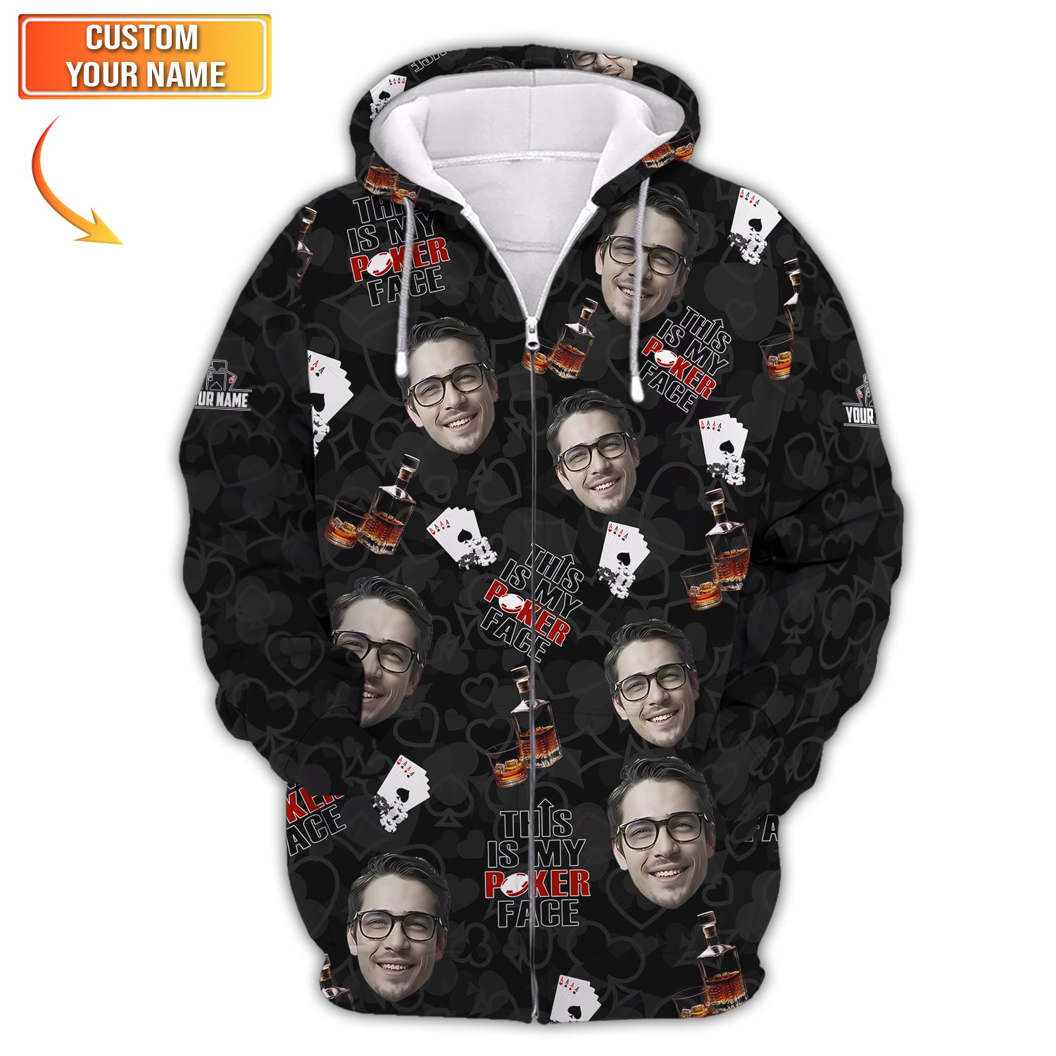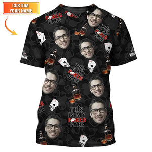 Poker Face Custom Name and Face Shirt – Whiskey and Cards Design – Funny Gift for Him