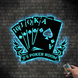 Poker Metal Wall Art, Custom Name Poker LED Wall Decor, Gift For Poker Lover, Poker Room Decor