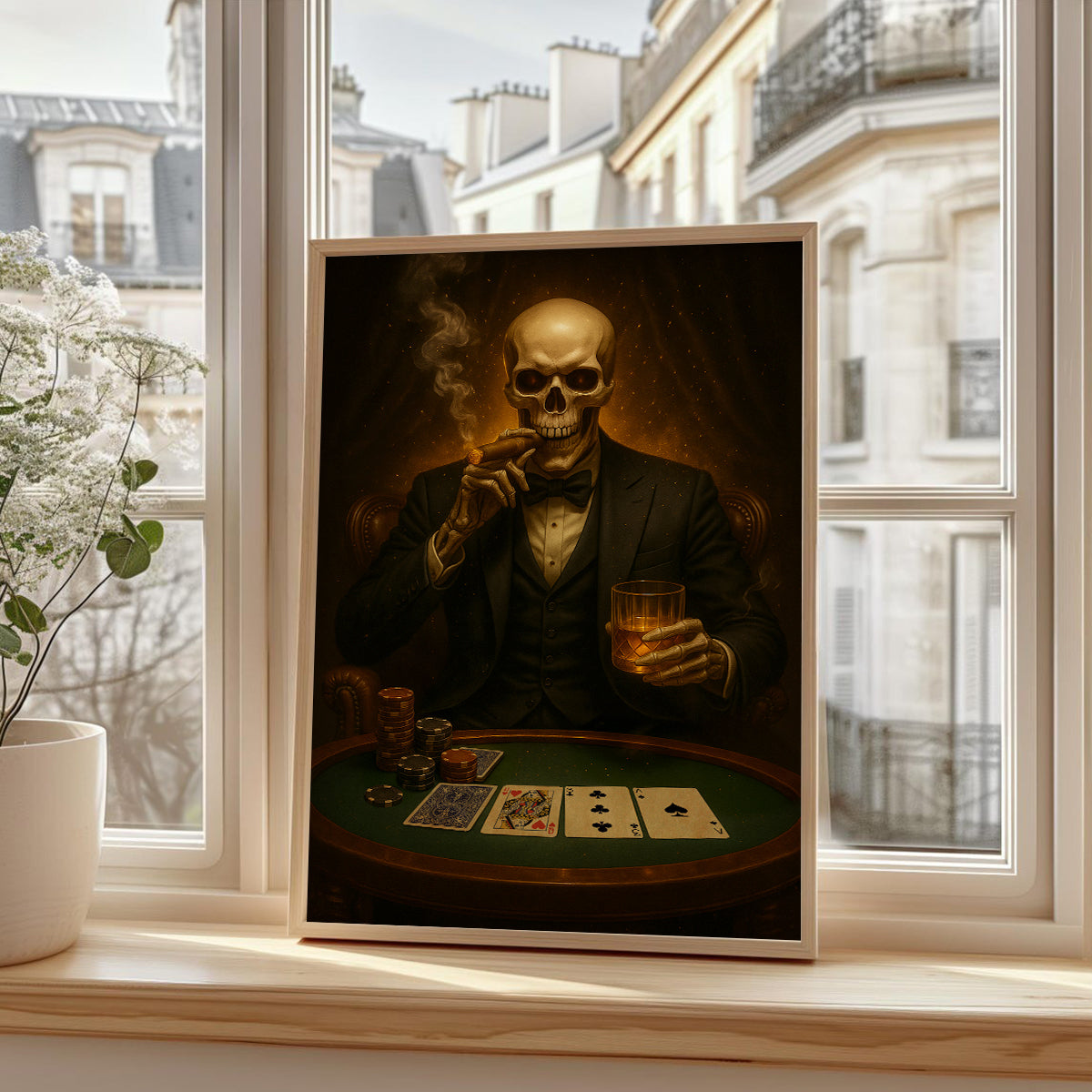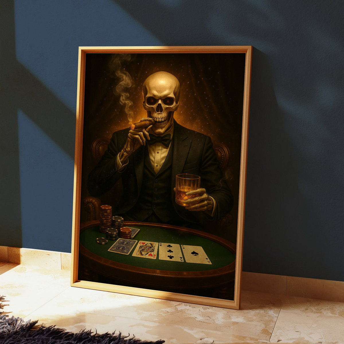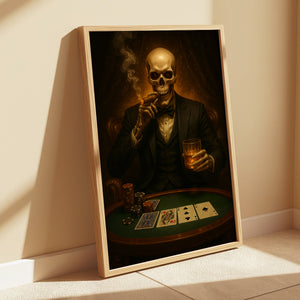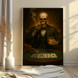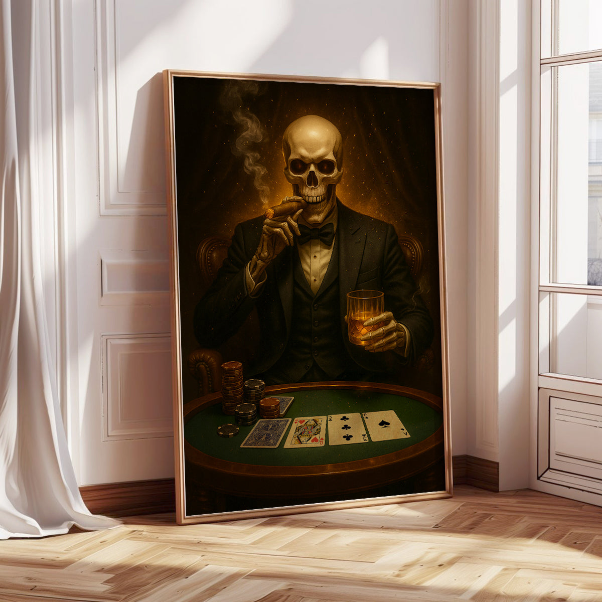 Poker Poster, Skeleton Gambler Wall Art, Poker Canvas, Gift For Poker Players