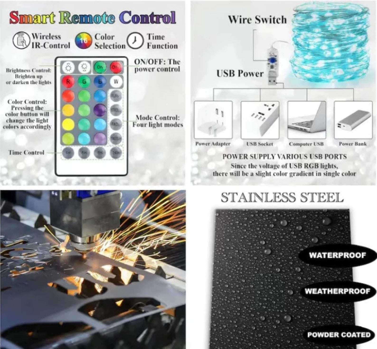- The USB plug enables you to plug the string LED lights into the USB hub, power adapter.