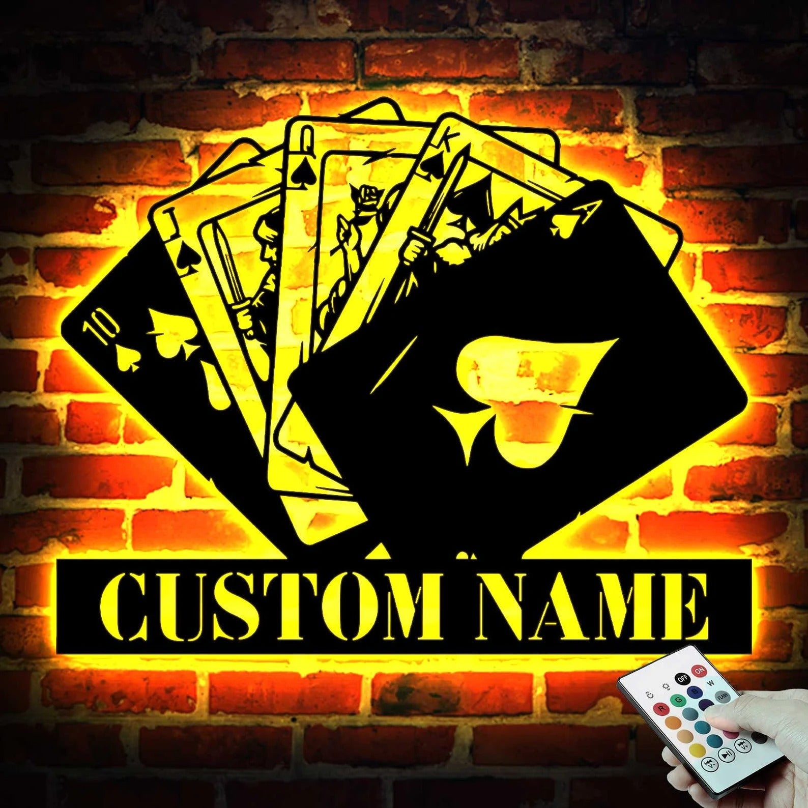 Poker Wall Art With LED Lights Custom Name, Poker Decor Wall Led Sign, Casino Wall Sign