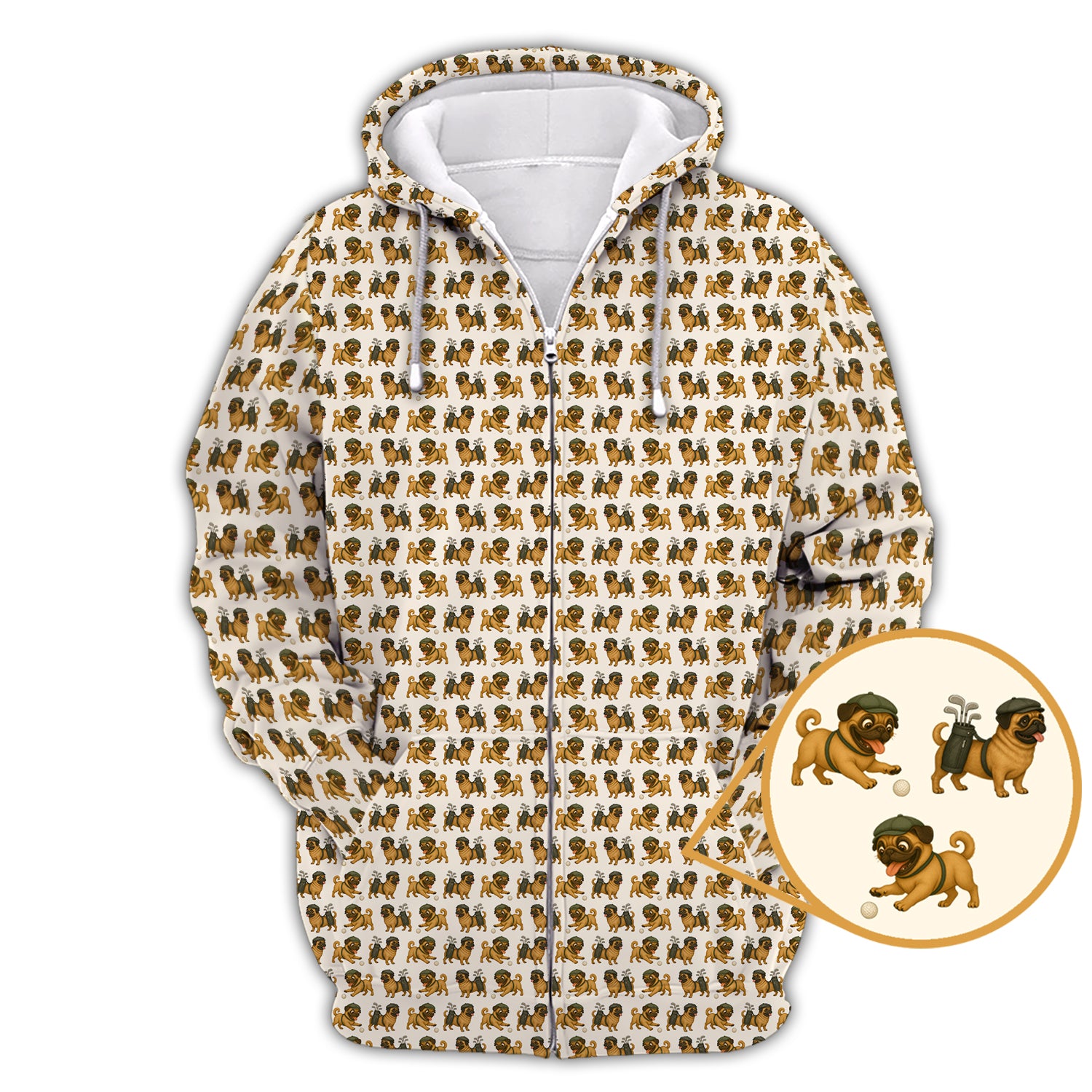 Pug Pattern Golf Shirt - Dog Golf Polos For Pet Lovers - Funny Golf Shirts For Golfers