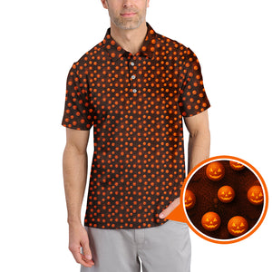 Pumpkin Pattern Golf Shirt For Men, Halloween Golf Shirt, Funny Halloween Golf Polos For Golfer