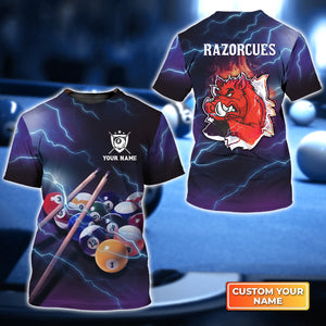 RAZORCUES Billiard Pool 8 Ball Personalized Name 3D Tshirt Gift For Billiard Players