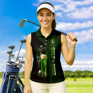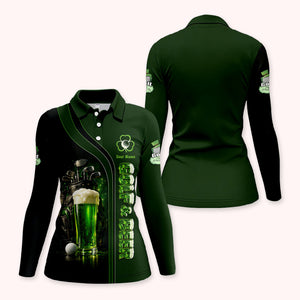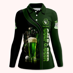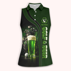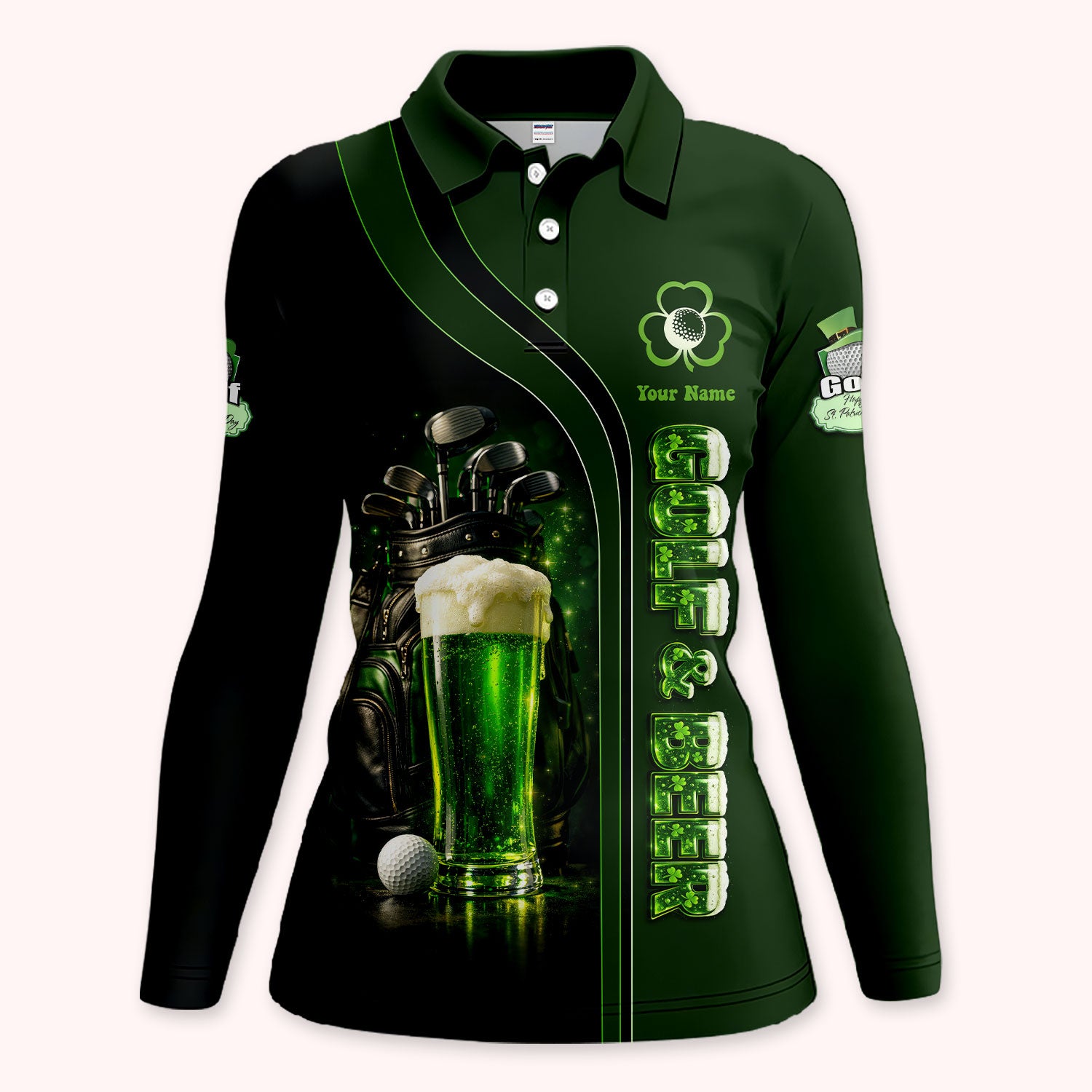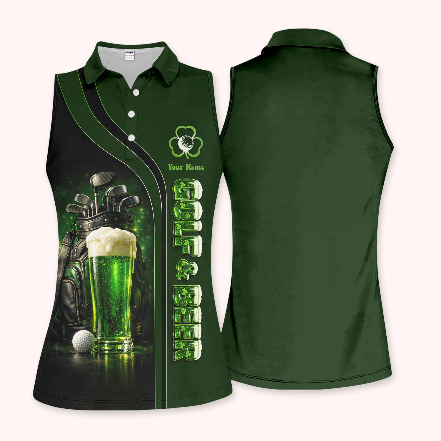 Personalized Shamrock Beer Golf Shirt For Women, St Patrick Green Golf Bag Beer Pattern Golf Polos, Golf Gift For Golfer