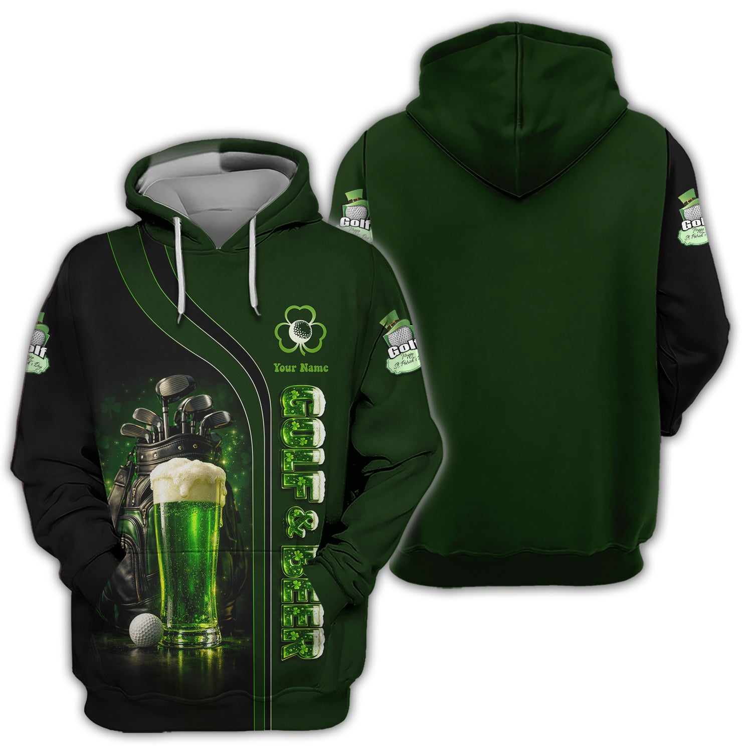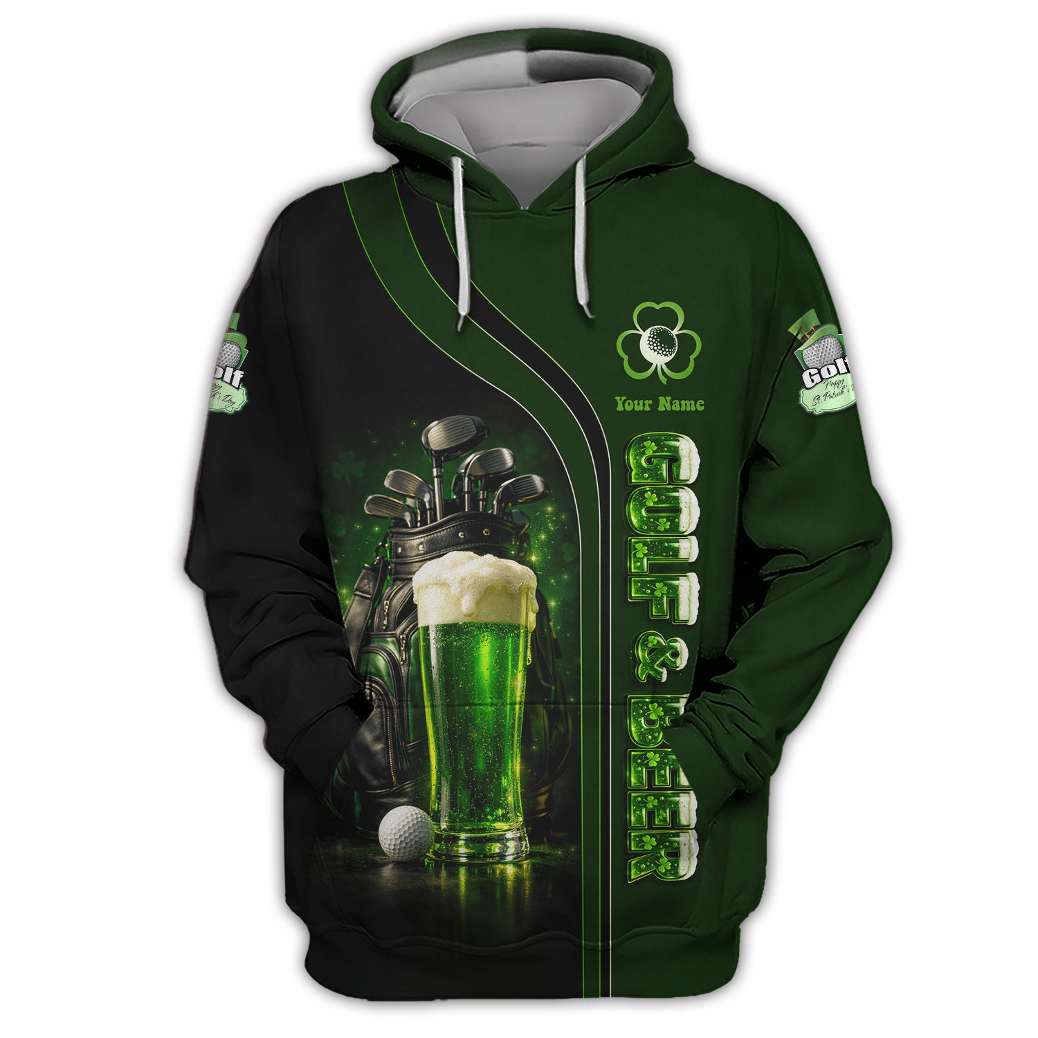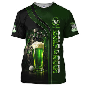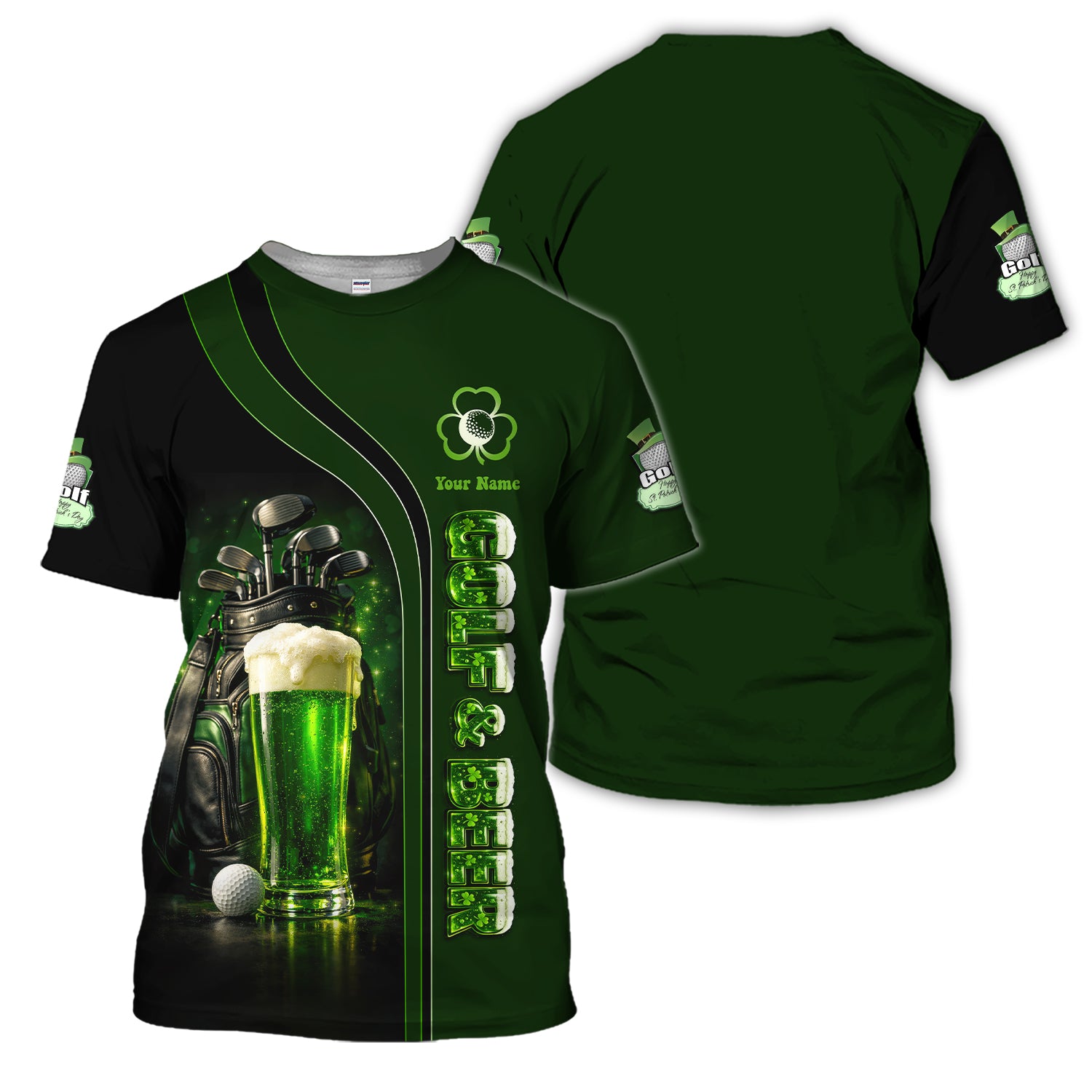 Personalized Shamrock Beer Golf Shirt For Women, St Patrick Green Golf Bag Beer Pattern Golf Polos, Golf Gift For Golfer