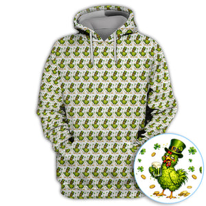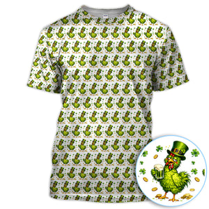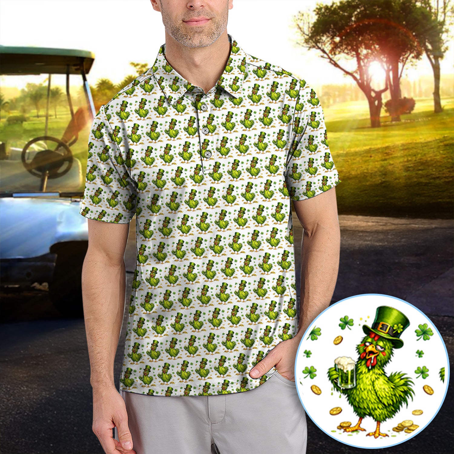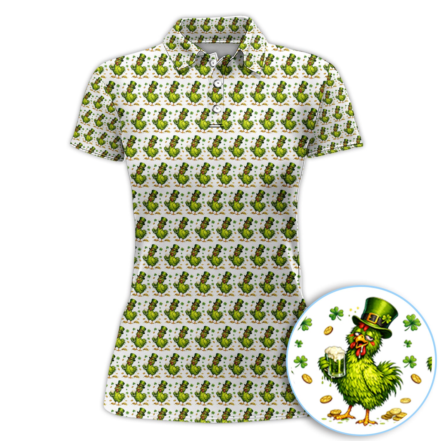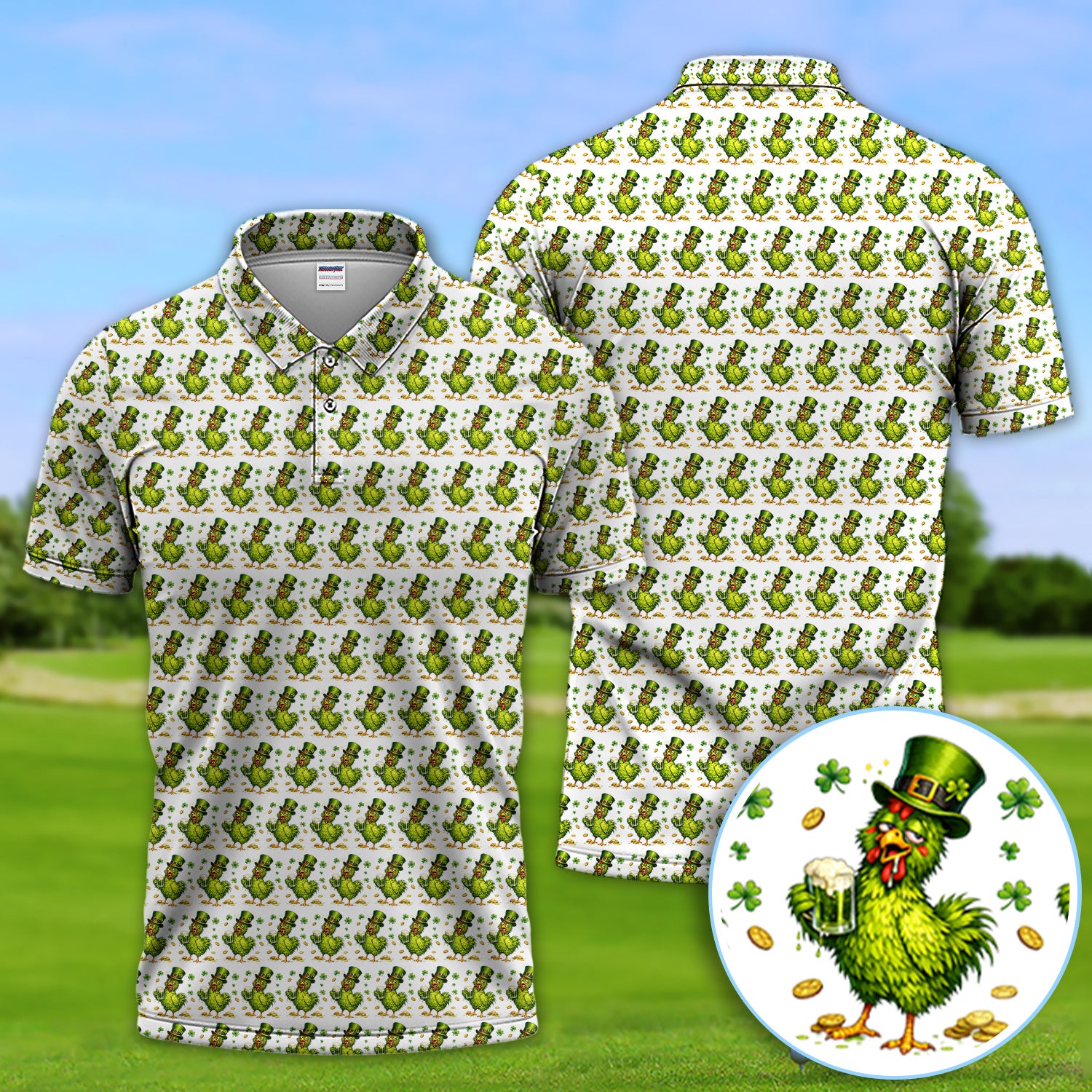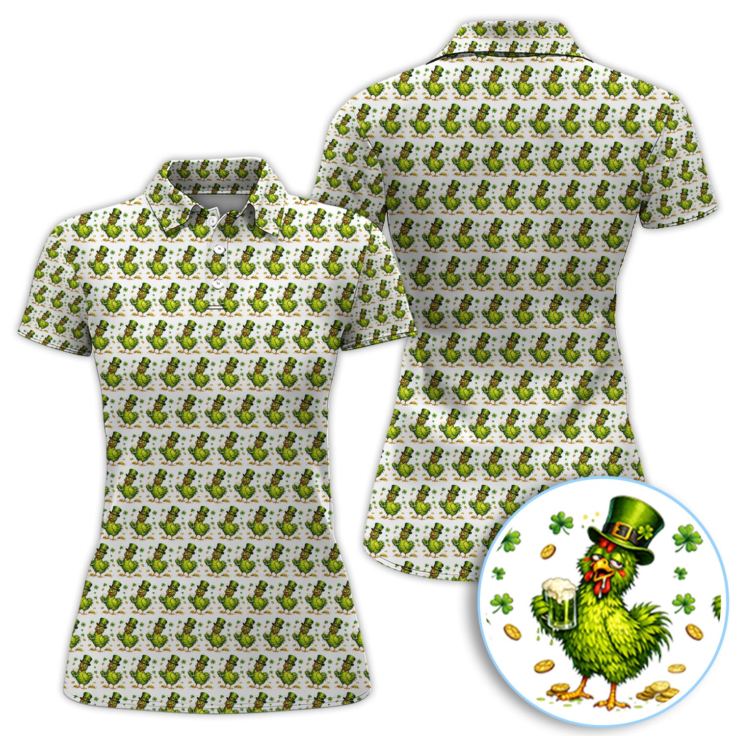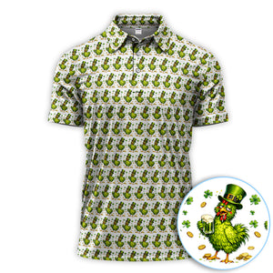 Shamrock Chicken Beer Golf Shirt, St Patrick Green Lucky Chicken Pattern Golf Polos, Golf Gift For Golfer