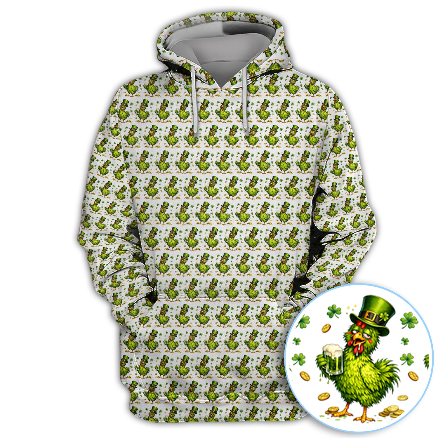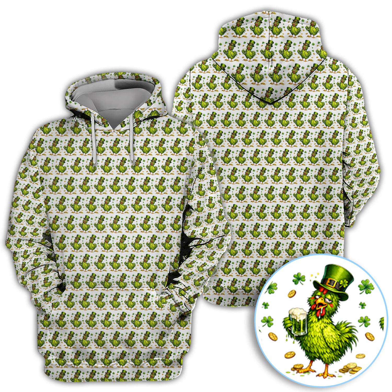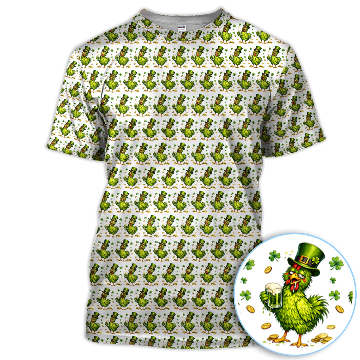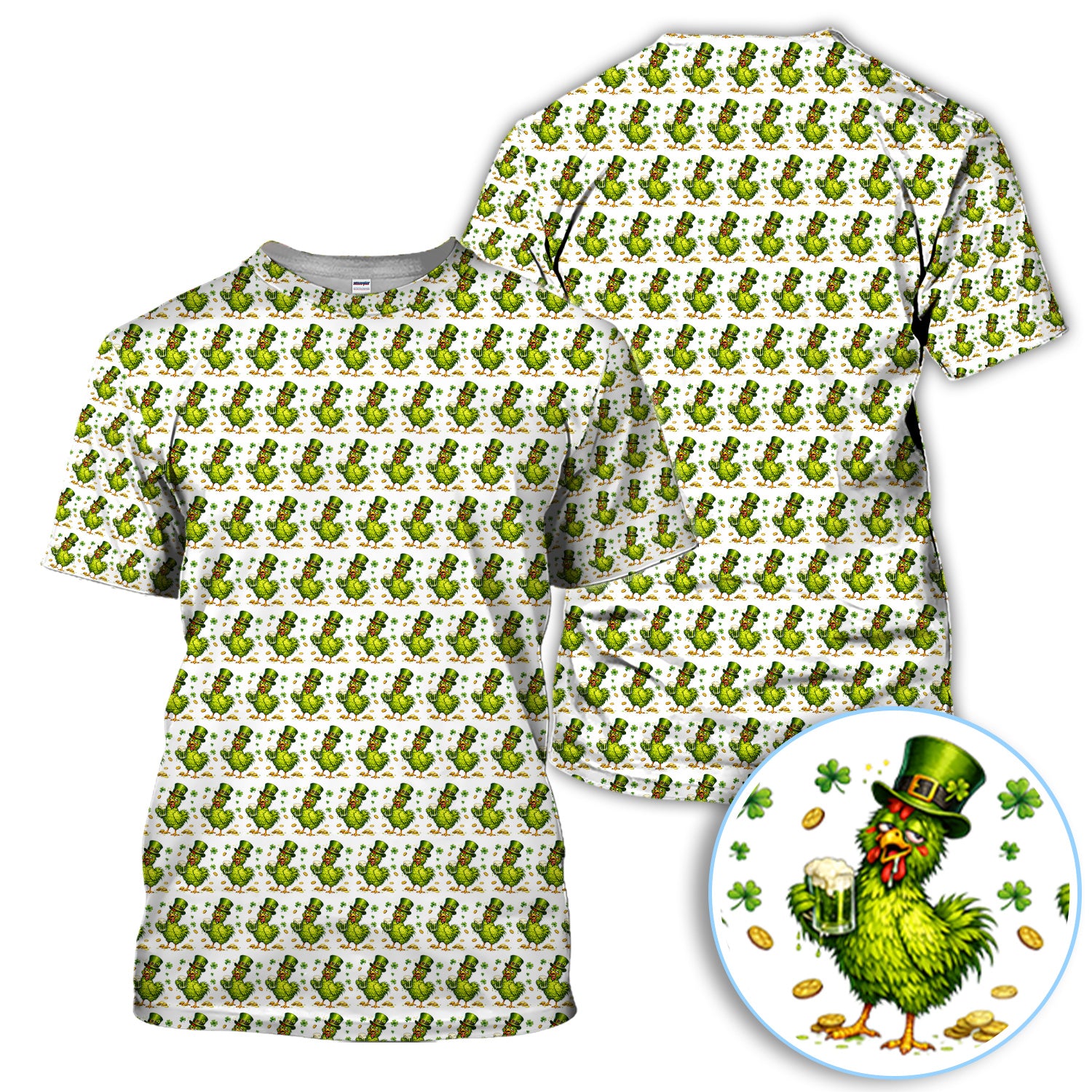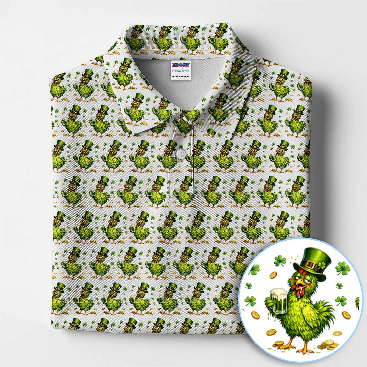 Shamrock Chicken Beer Golf Shirt, St Patrick Green Lucky Chicken Pattern Golf Polos, Golf Gift For Golfer