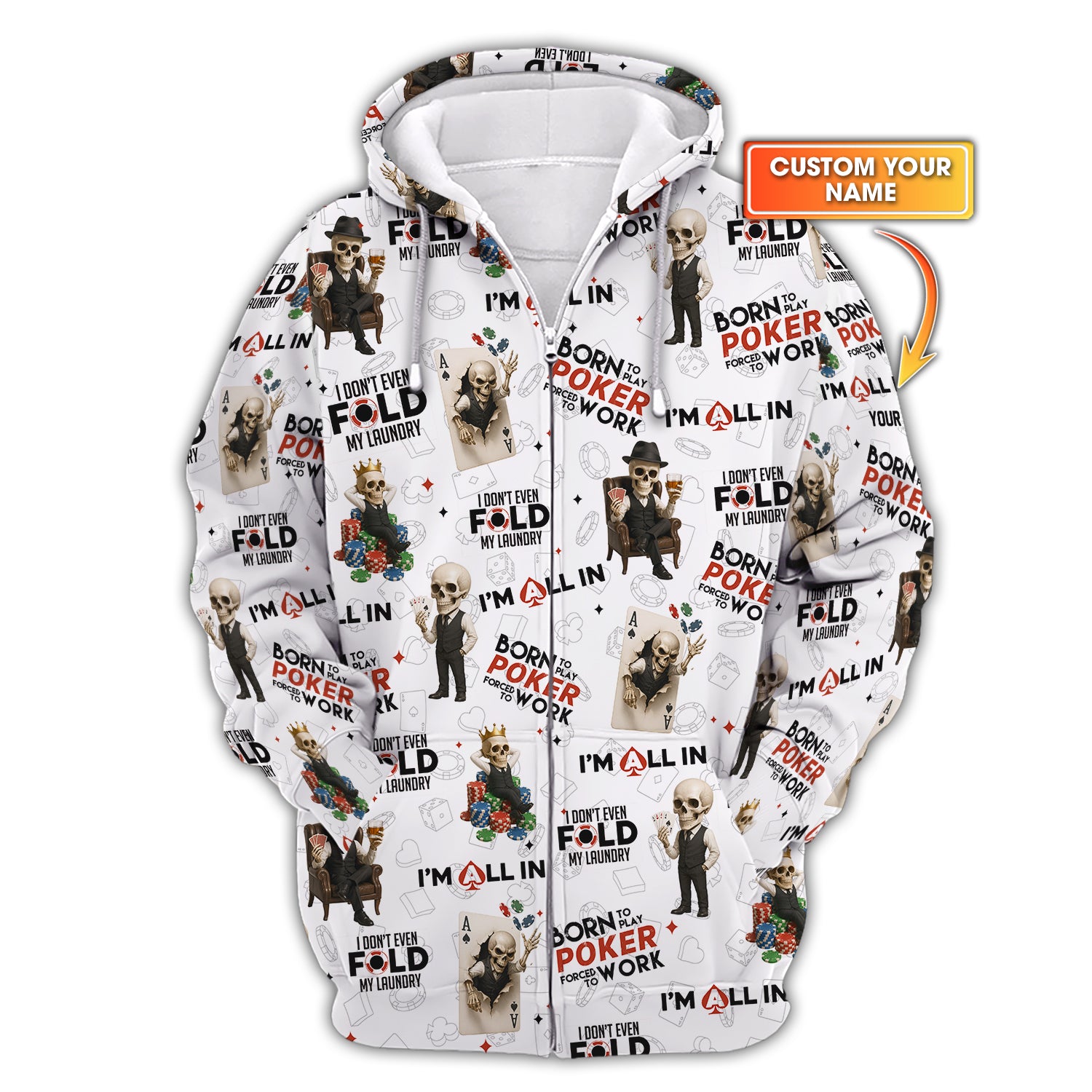 Skeleton Born To Play Poker Polo Shirt Custom Name, ACE Poker All In Tee - Gift for Him