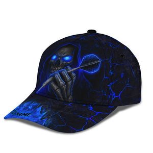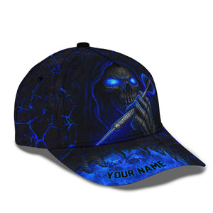 Skull Dart Classic Cap, Grim Reaper Blue Flame Dart Hat, Custom Name Dart Player Gift