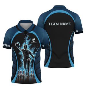 Skull Reaper Strike Bowling with Blue Smoke T Shirt, Custom Bowling Jersey, Bowling Shirts for Men