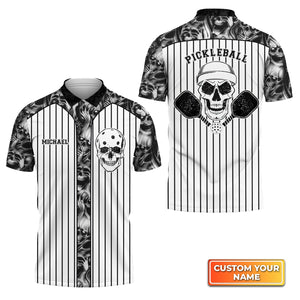 Skull Vertical Stripes Personalized Name 3D Polo Shirt Gift For Pickleball Player