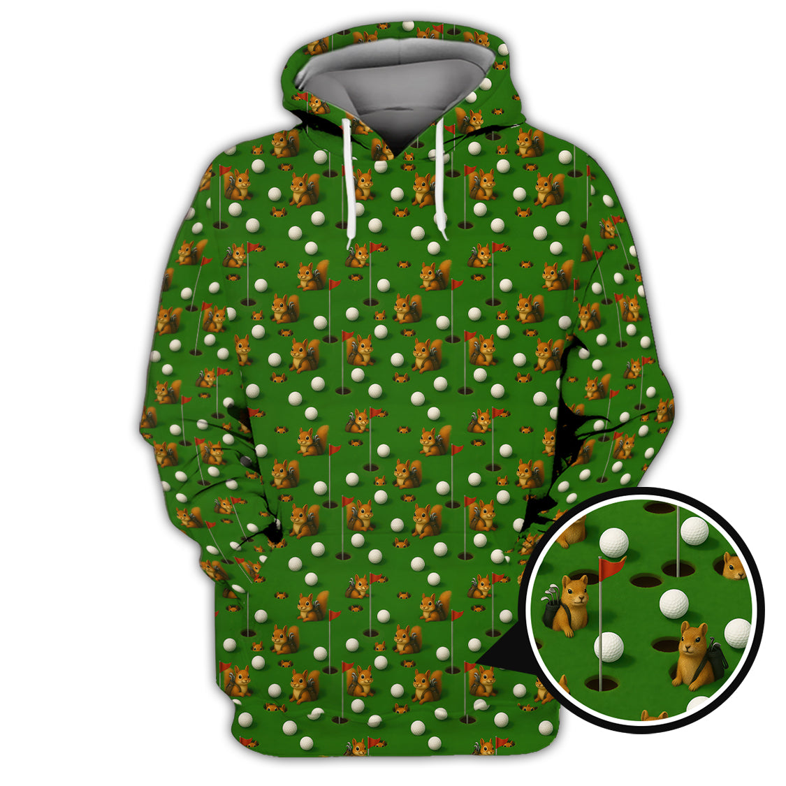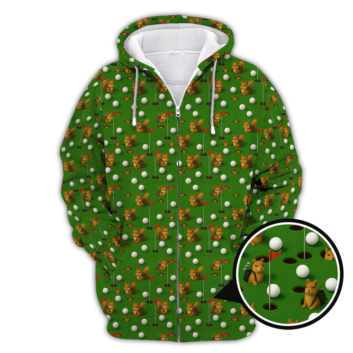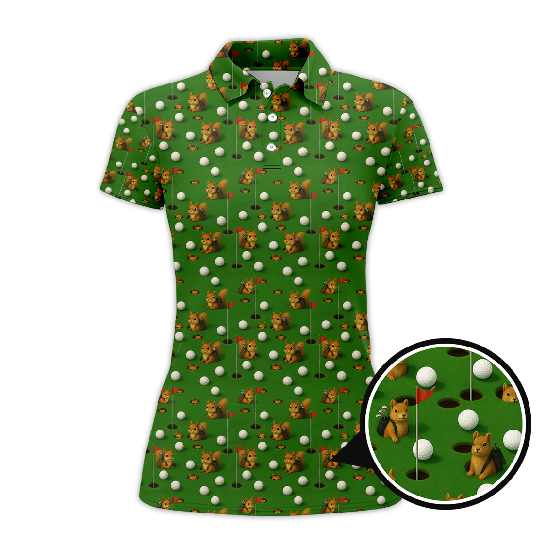 Squirrel Golf Shirt, Pattern Golf Shirt, Green Golf Shirt, Crazy Golf Shirt For Men