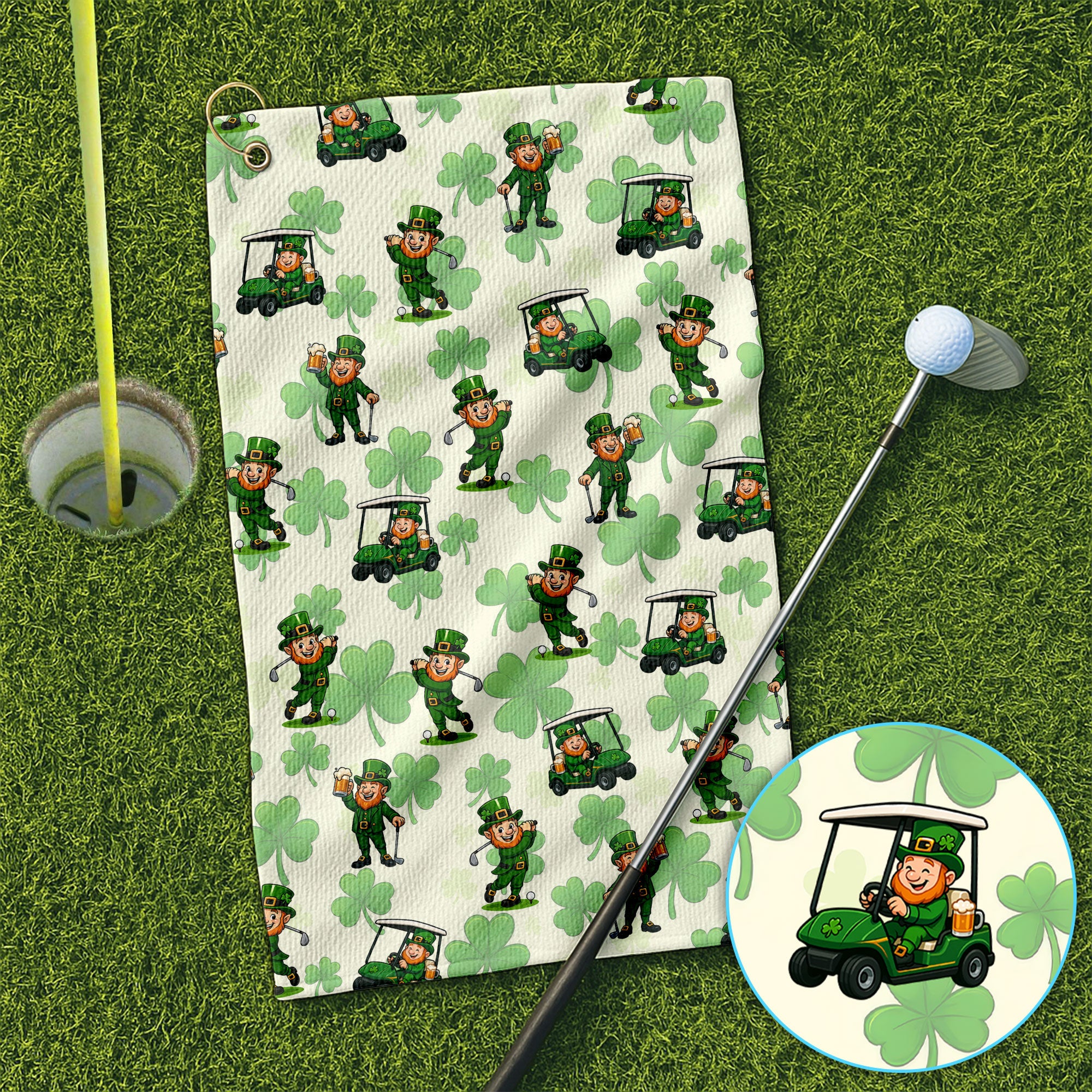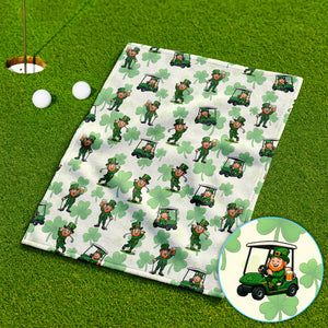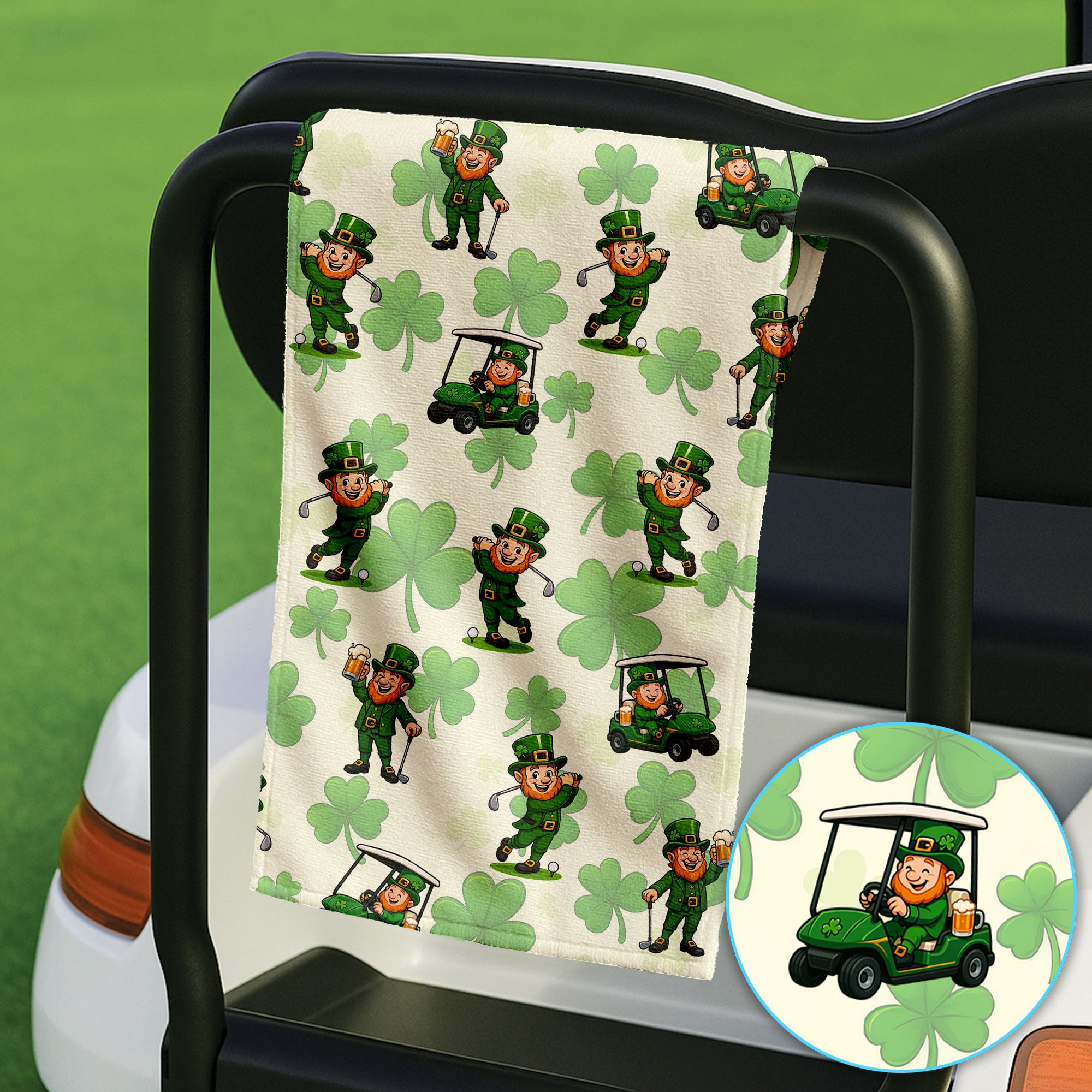 St. Patrick Leprechaun Golf Pattern Towel, Funny Golf Towels For Men, Golf Gift For Golfer