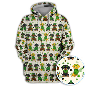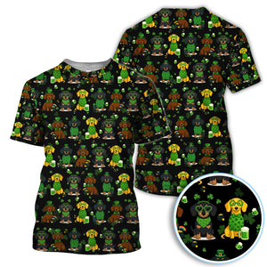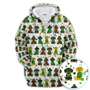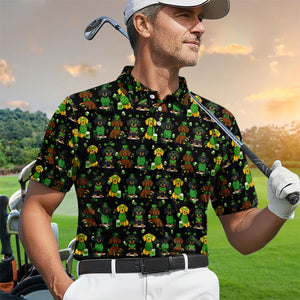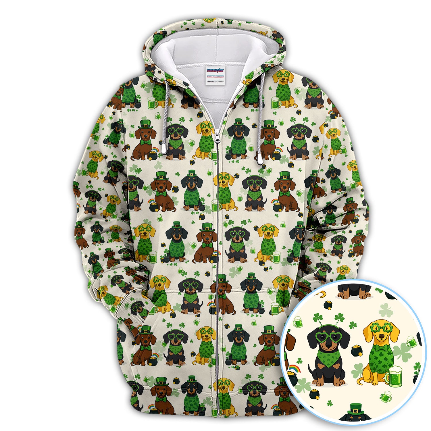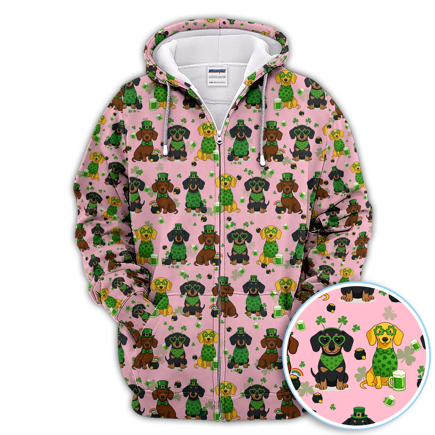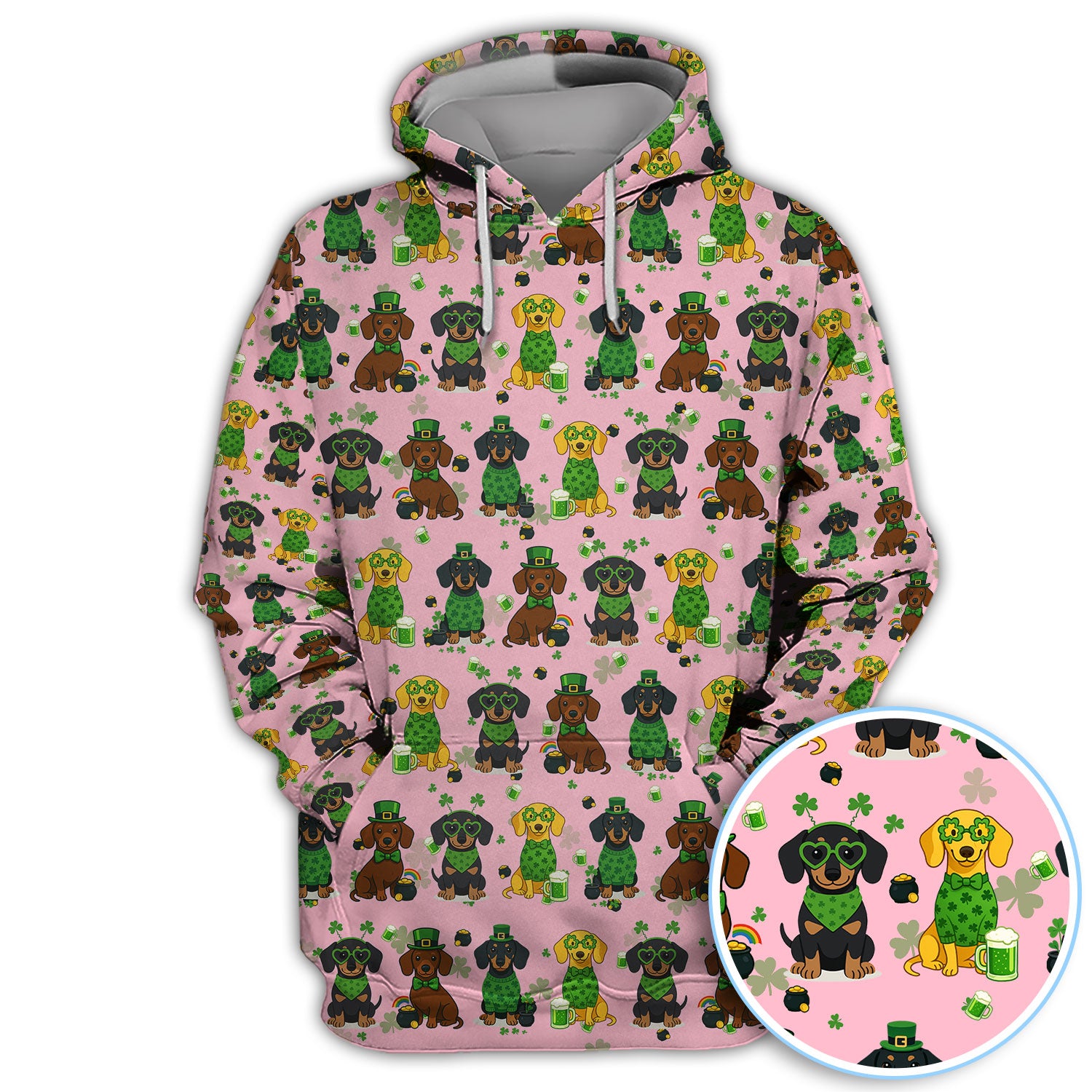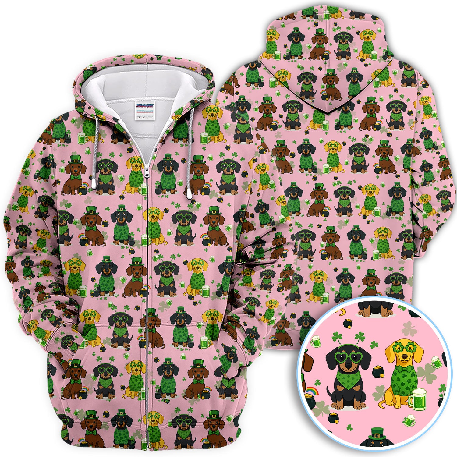 St. Patrick’s Day Dachshund Dog Pattern Golf Shirt, Funny Shamrock Dog Golf Polos For Men, Golf Gift For Golfer