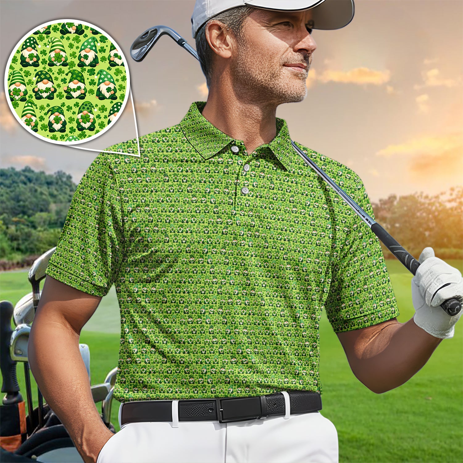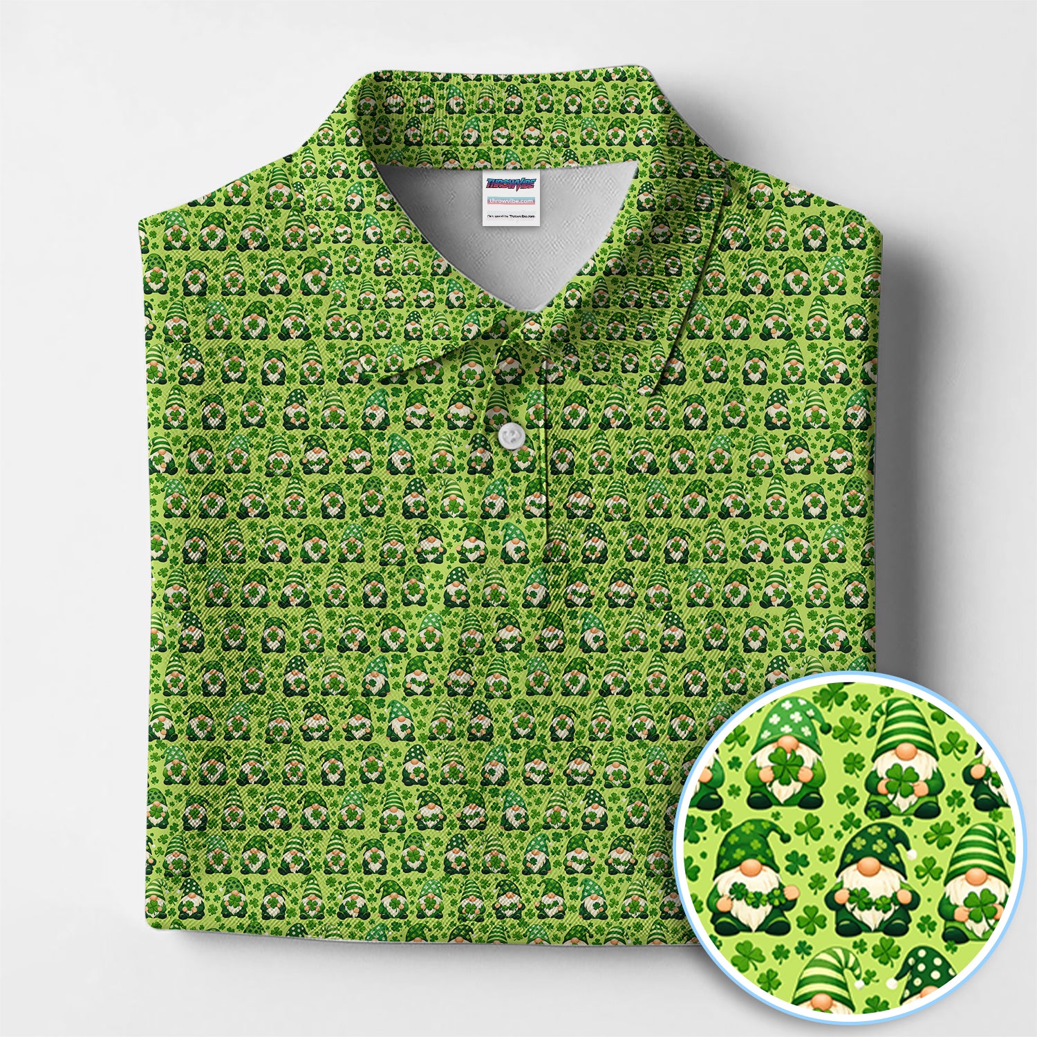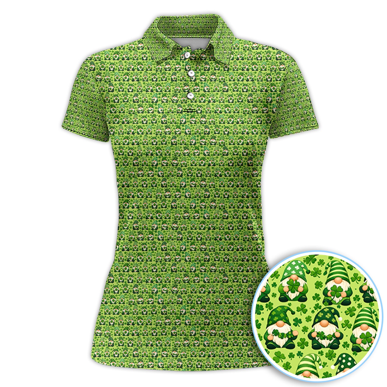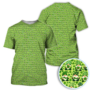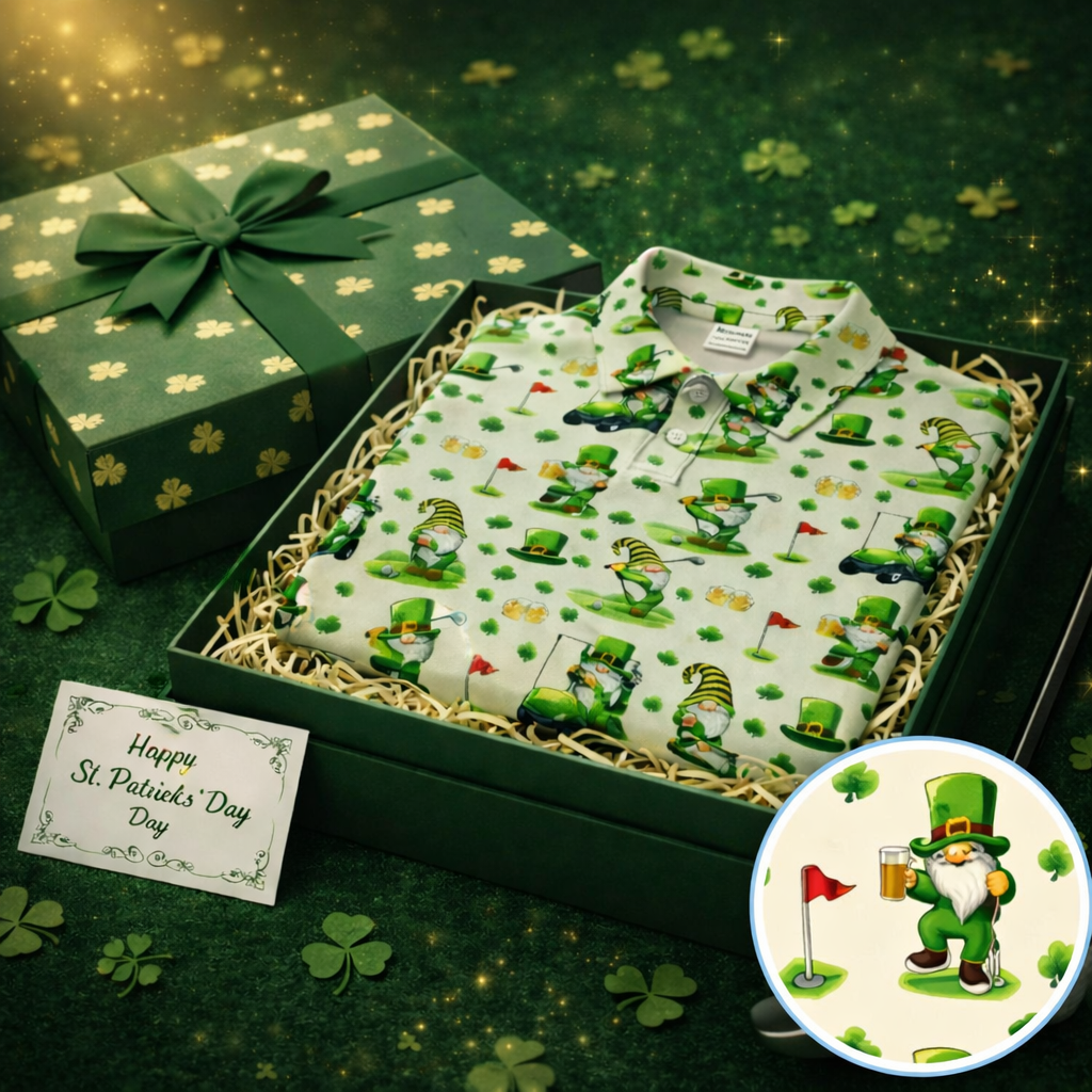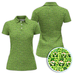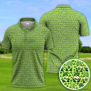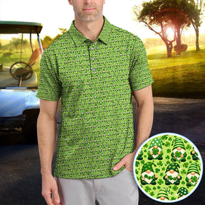 St Patrick’s Day Gnome Pattern Golf Shirt, Green Shamrock Golf Polos For Golfer